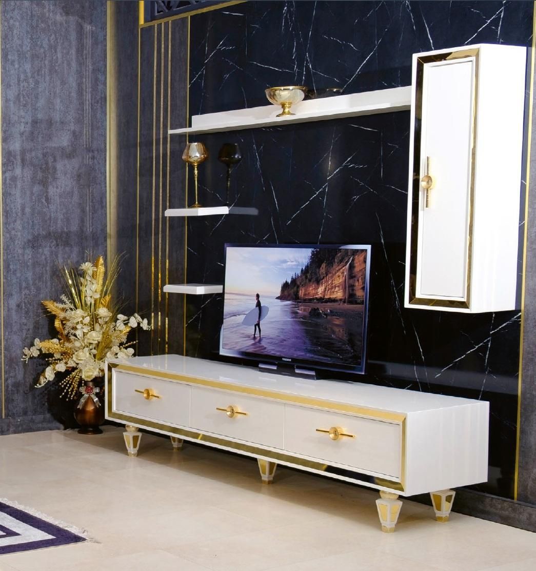 Edelstahl Weißes Lowboard Modernes Sideboard TV-Ständer Kommode Holz