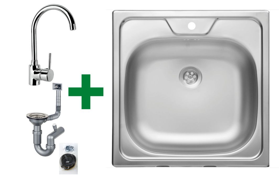 Edelstahlspüle 48x48 cm + Armatur + Siphon-Set