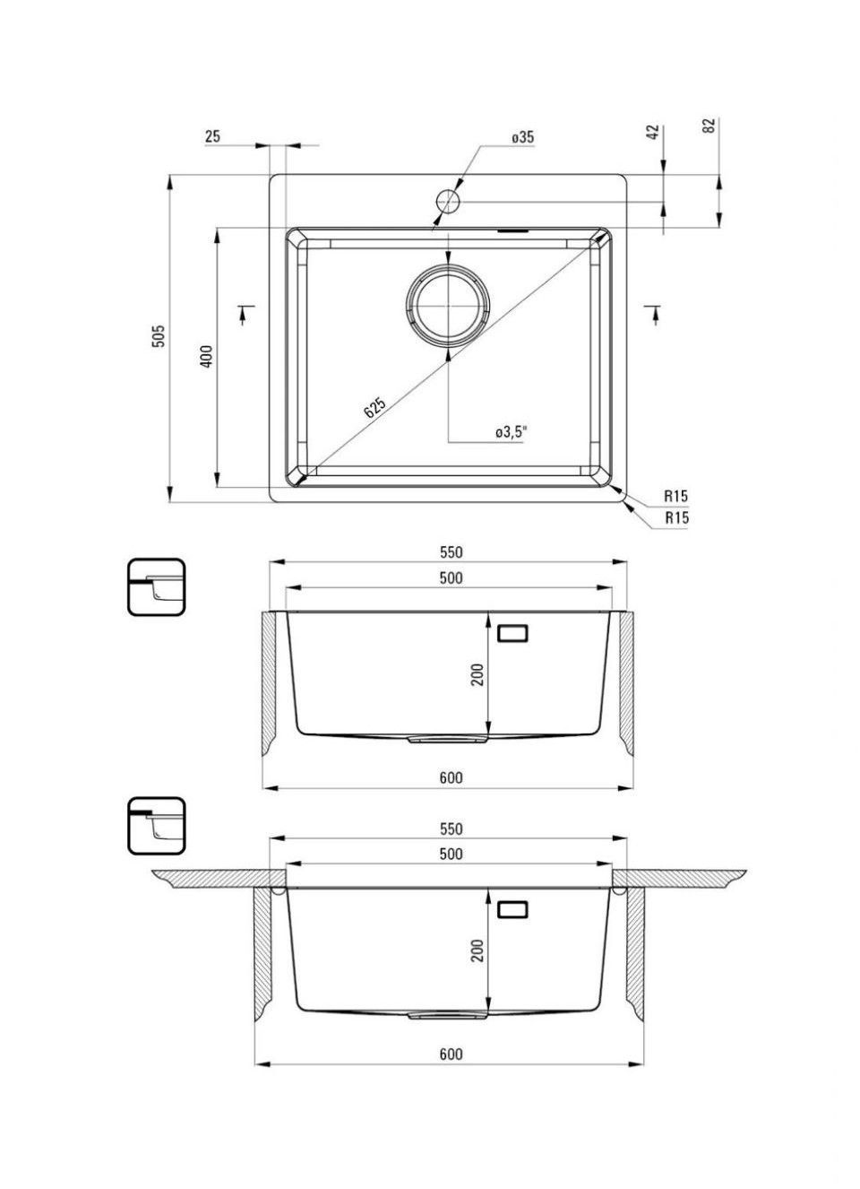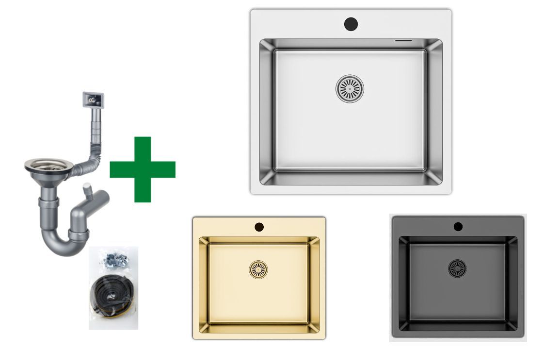 Edelstahlspüle 50,5x55 cm inkl. Siphon-Set