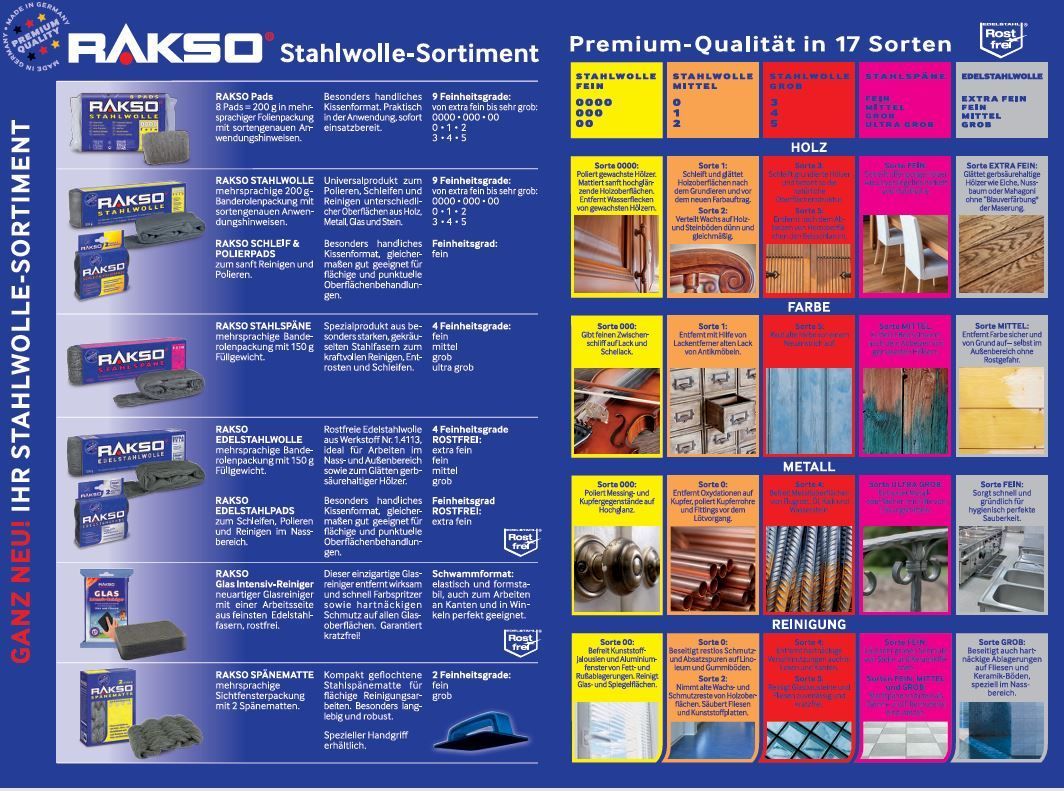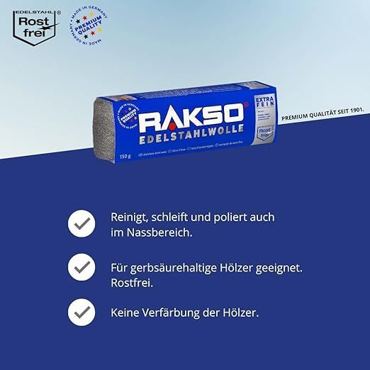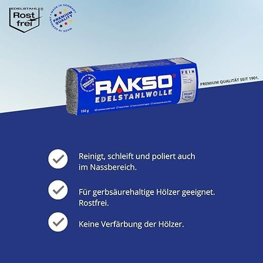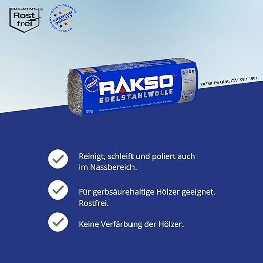 Edelstahlwolle RAKSO 150g Schleifwolle Polierwolle für Metalle, Holz alle Größen