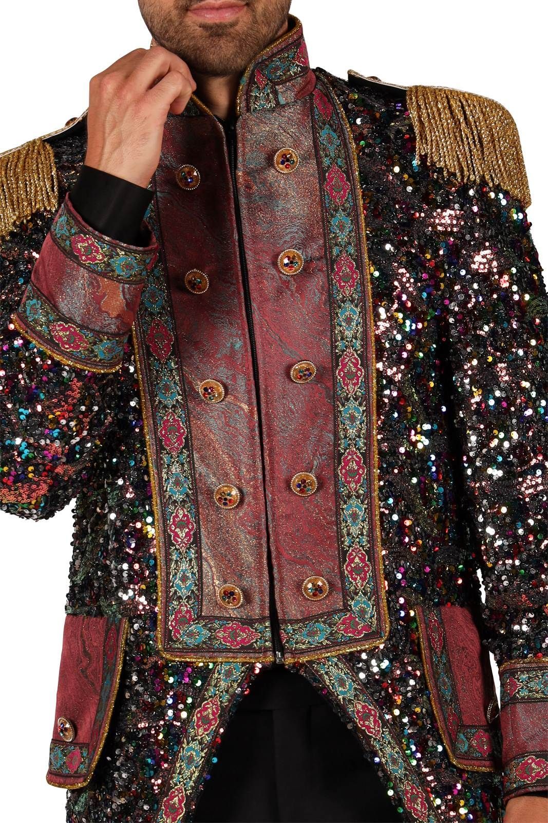 edle Pailletten Jacke Damen Herren Uniform Gehrock hochwertig Karneval Fasching