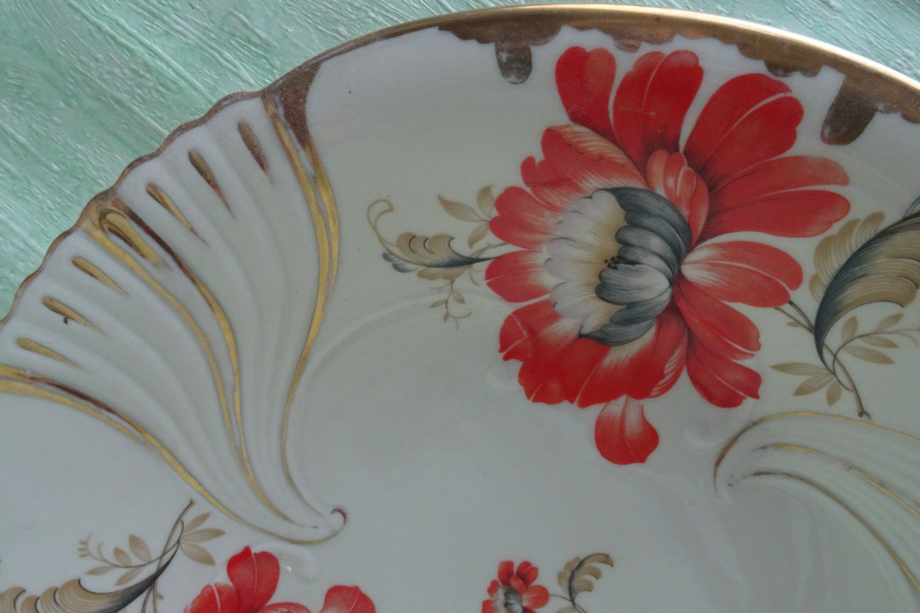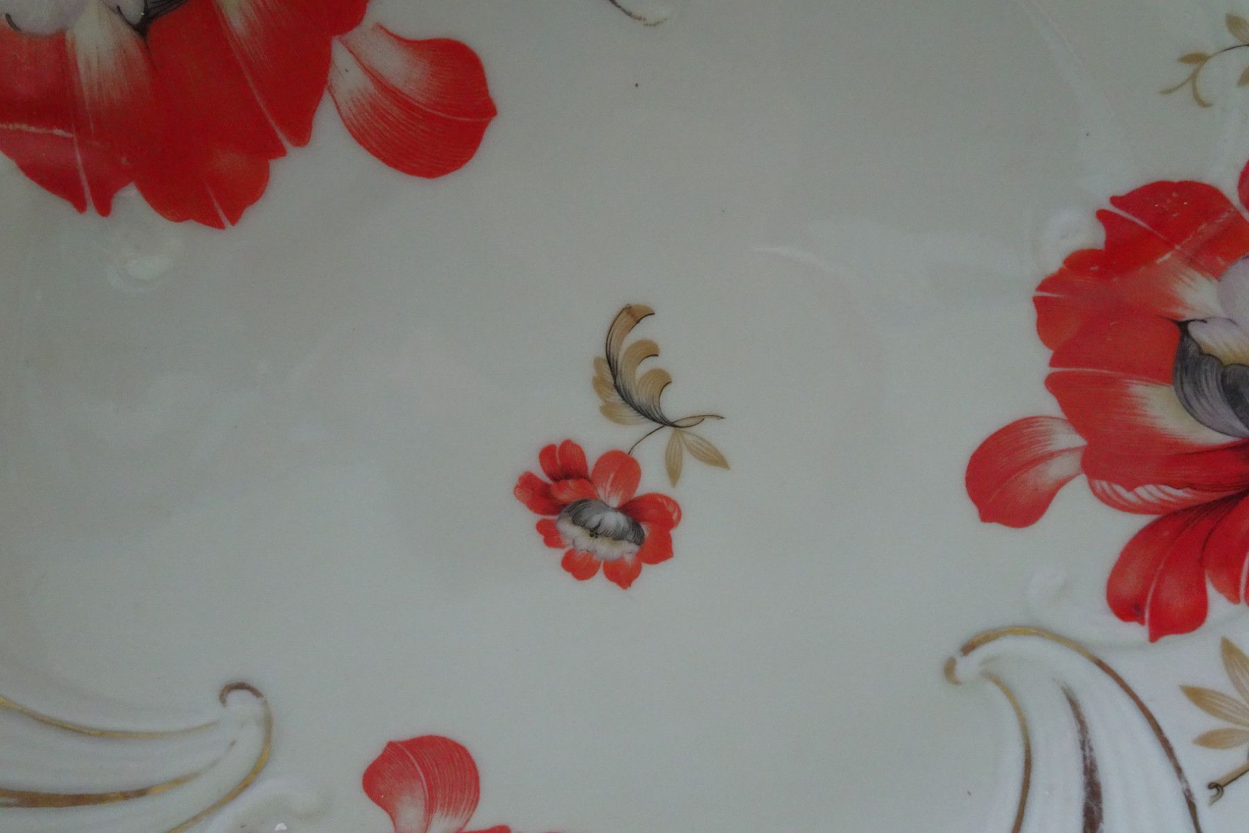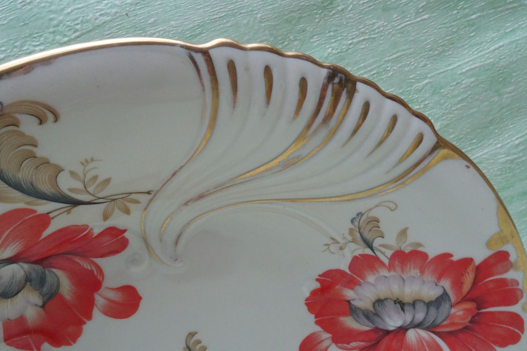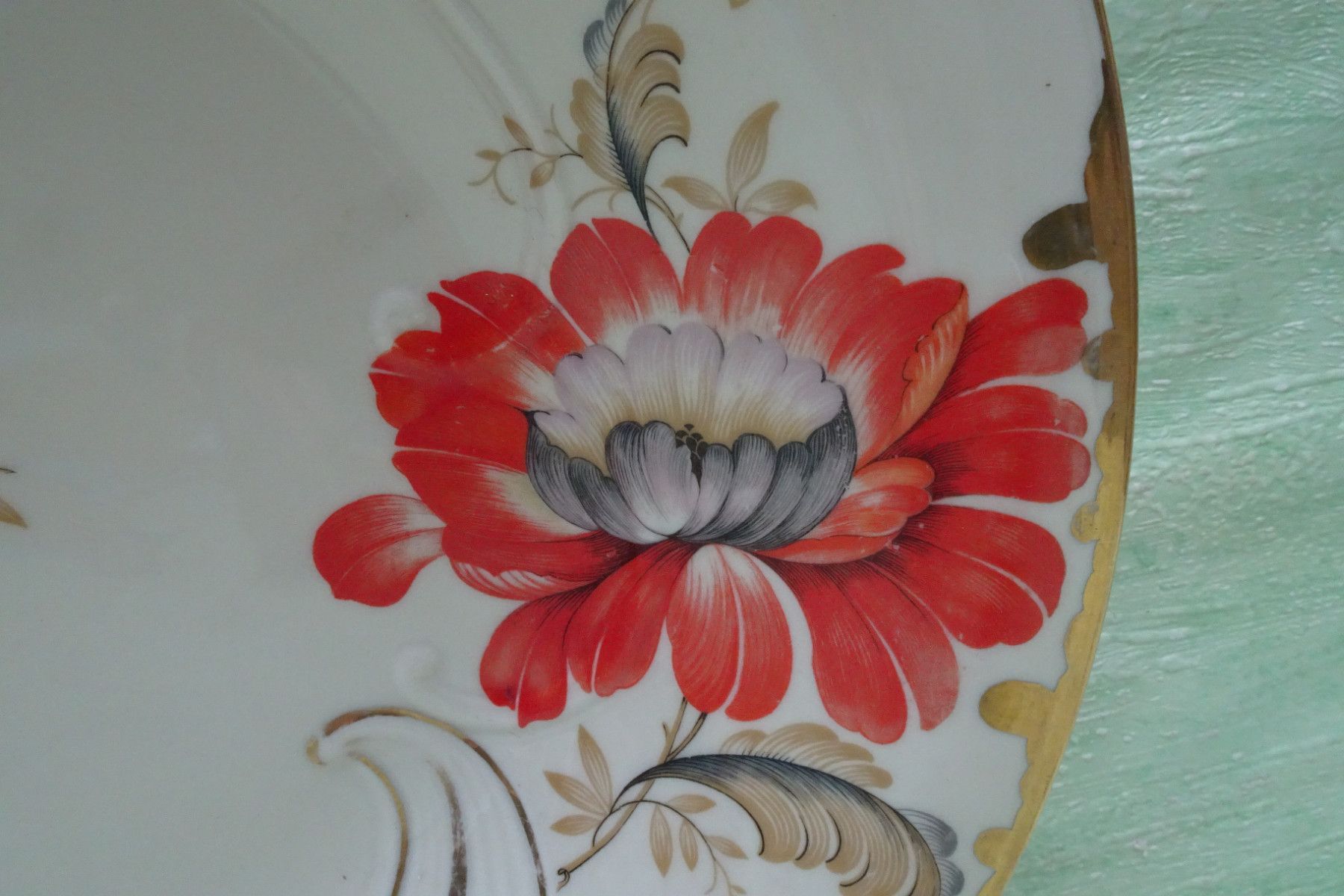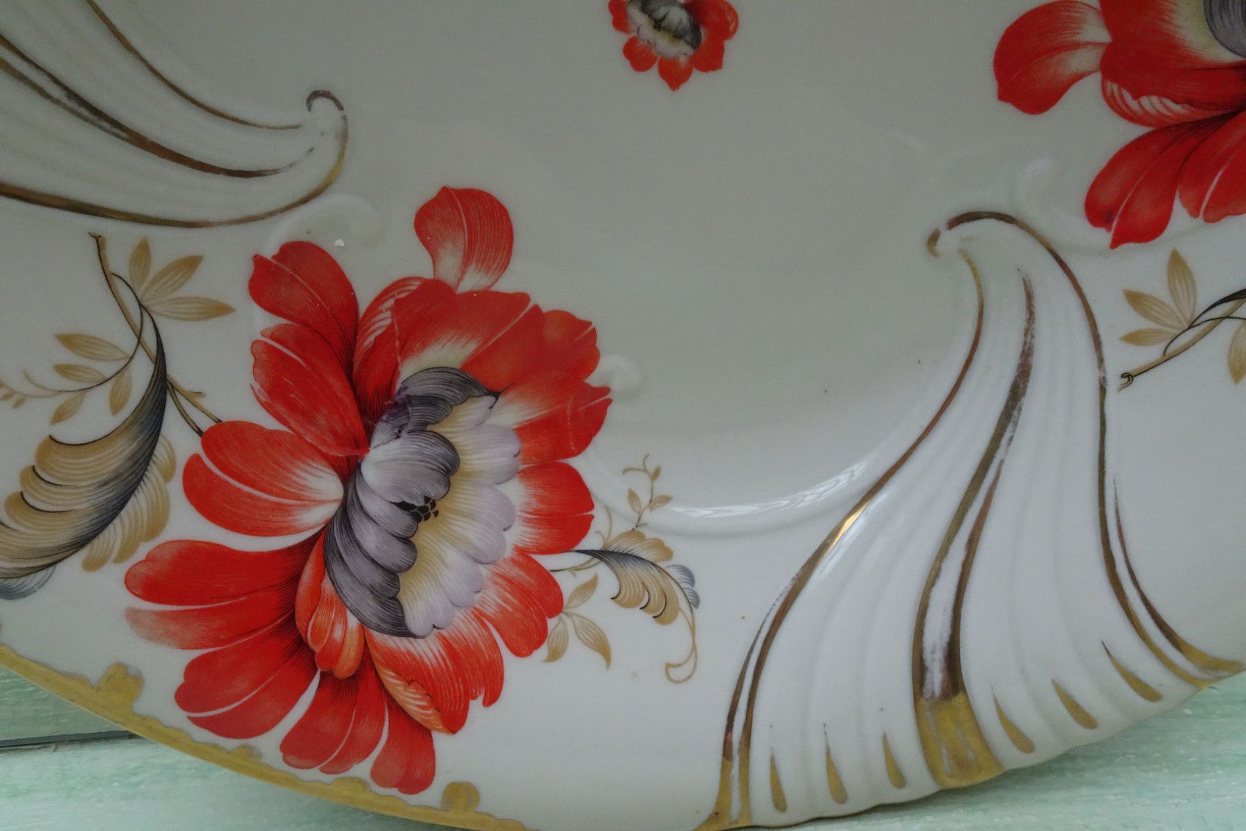 edle rote Blüten Teller Schale Platte 40er Jahre Eschenbach Handarbeit ca 32x5cm
