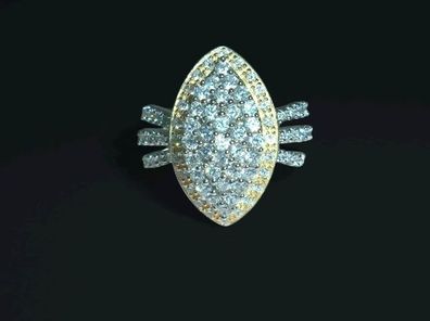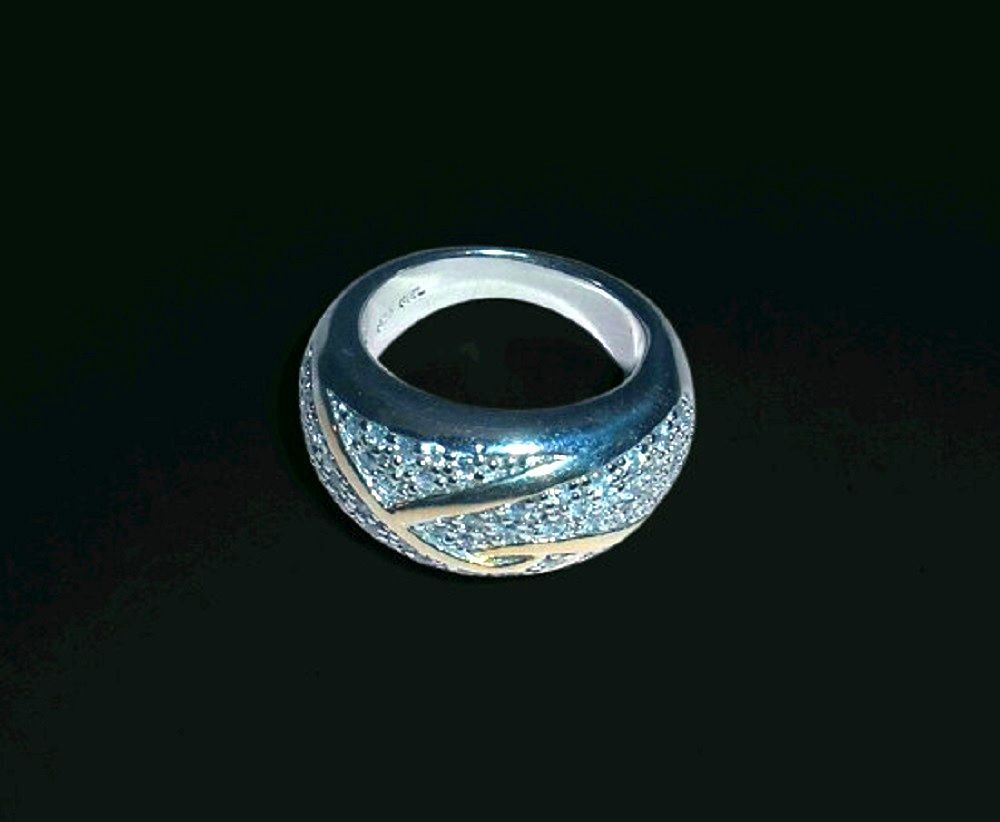 Exklusiver Guel Statement-Ring - 925 Silber Bicolor - Zirkonia - Gr. 54 #1064