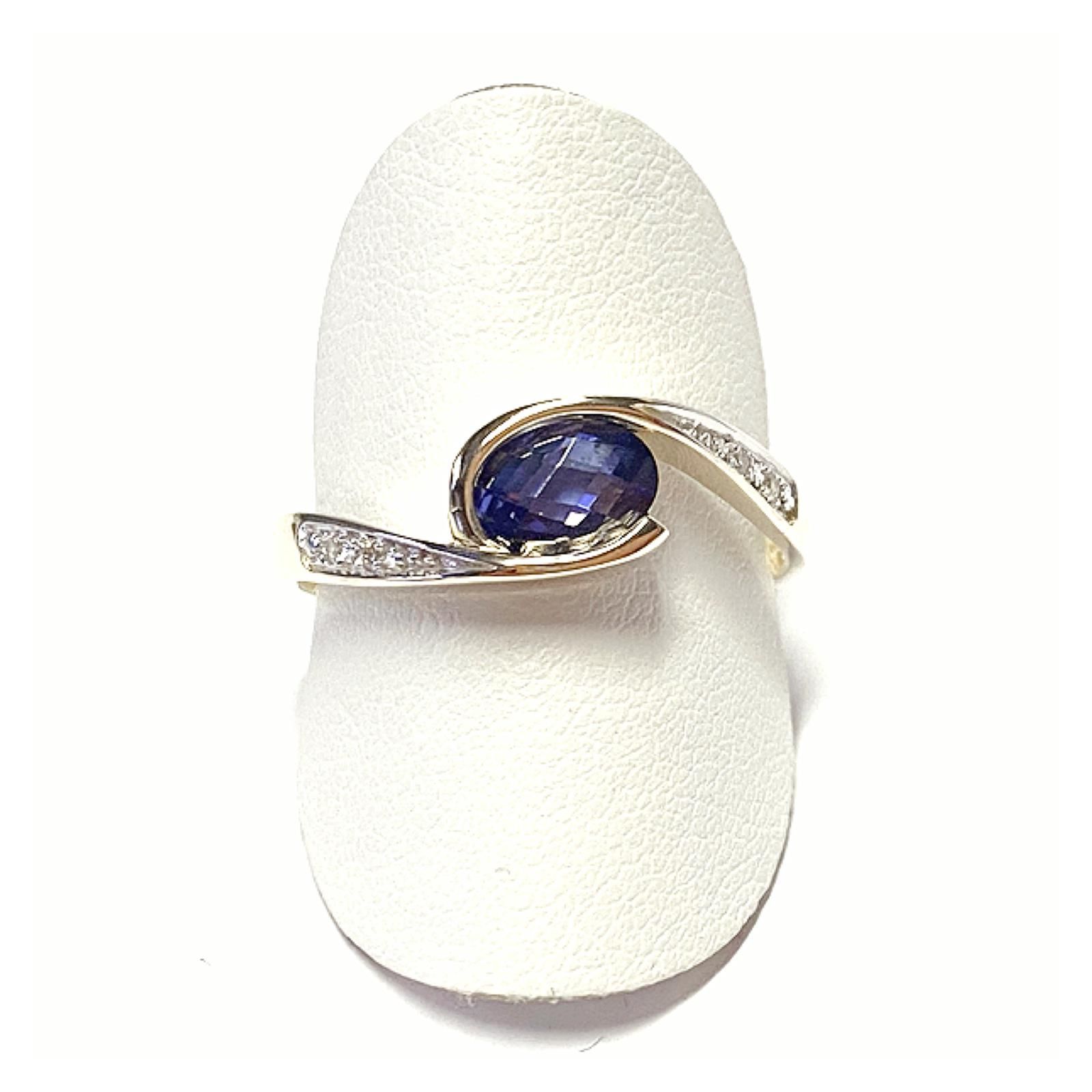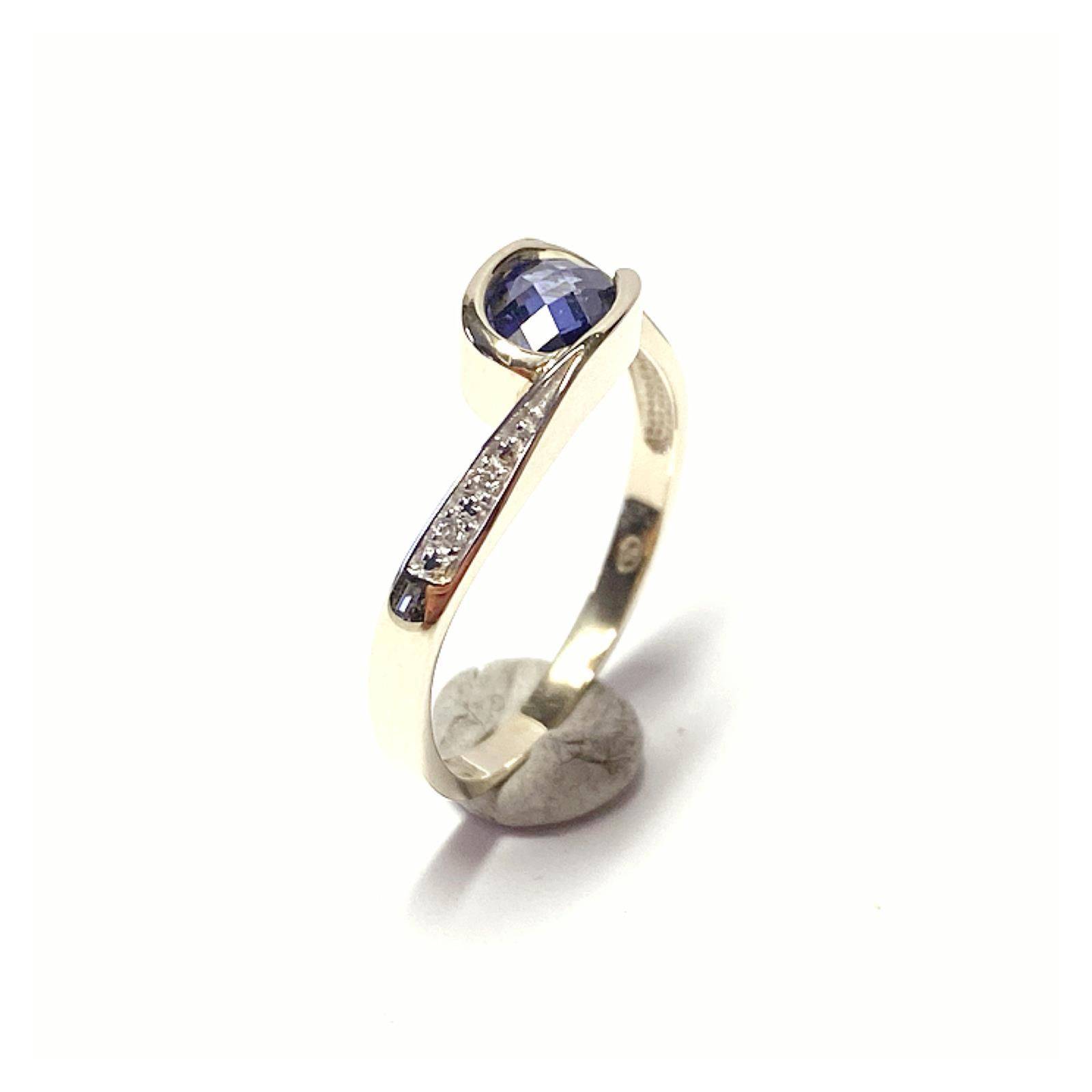 edler Schmuckring in 333/- Gelbgold mit blauem Zirkonia #55