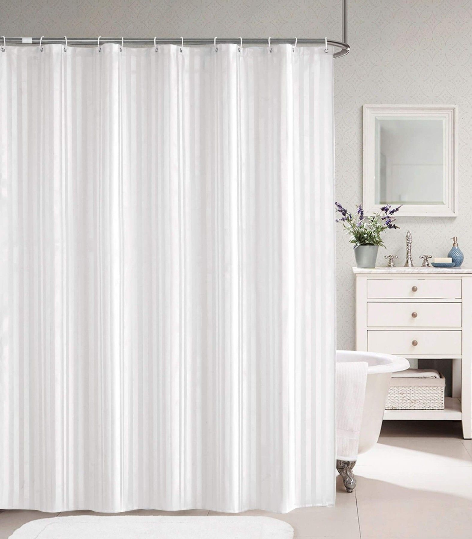 Edler Textil Duschvorhang gestreift Damast Weiss inkl. Ringe - 8 Maße zur Auswahl