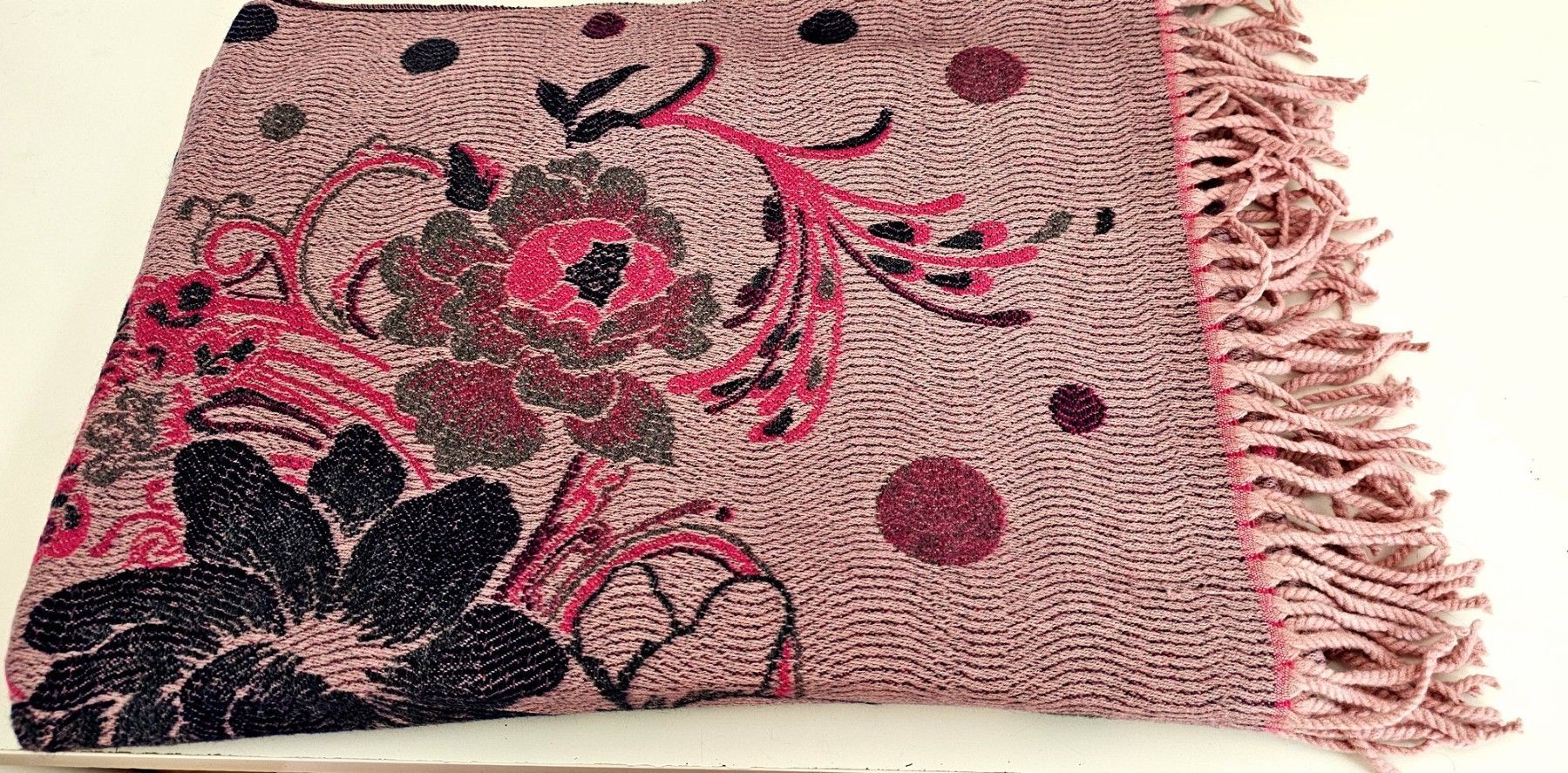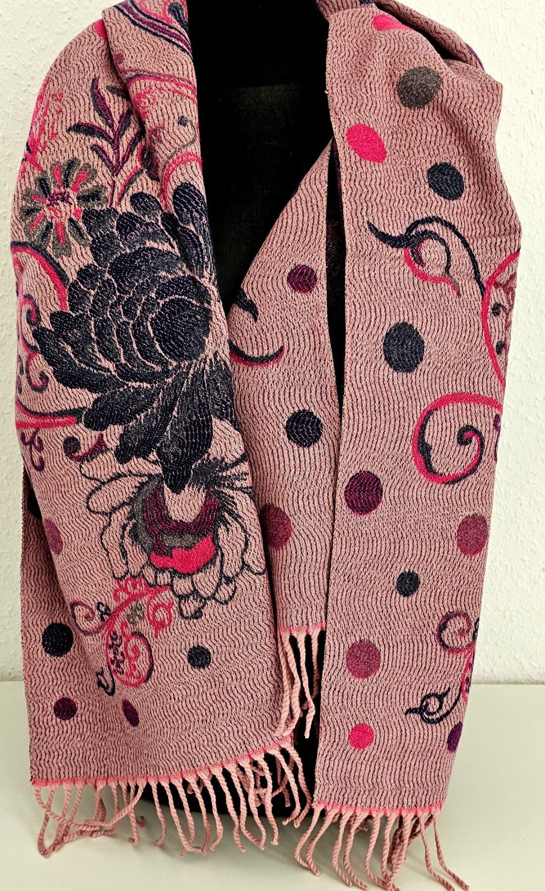 Edler XXL Winterschal Schal Tuch soft Viskose/Wolle Fransen Blumenprint/Punkte Altrosa