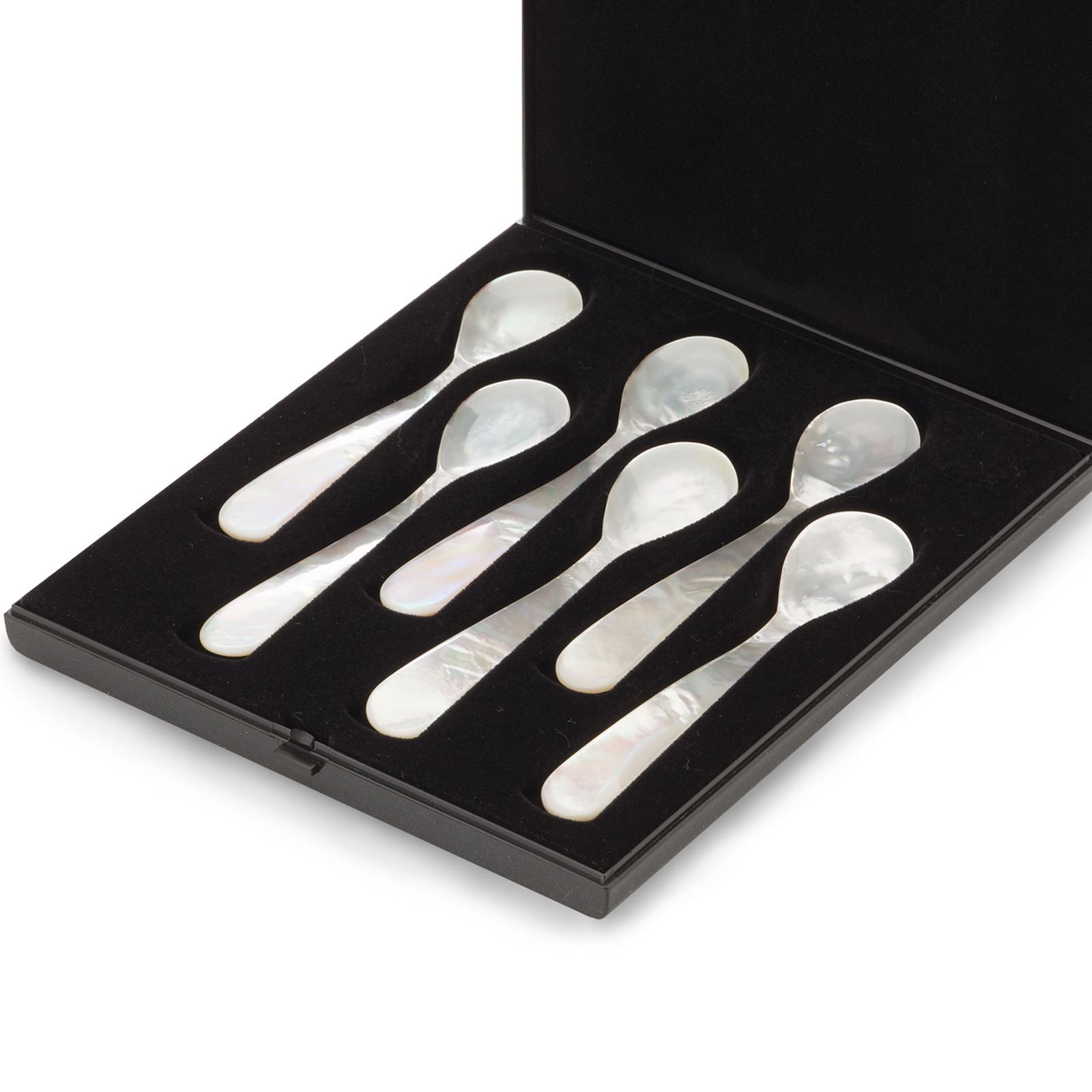 edles beigefarbenes Perlmutt Eierlöffel Set je 11 cm 6-teilig im Etui