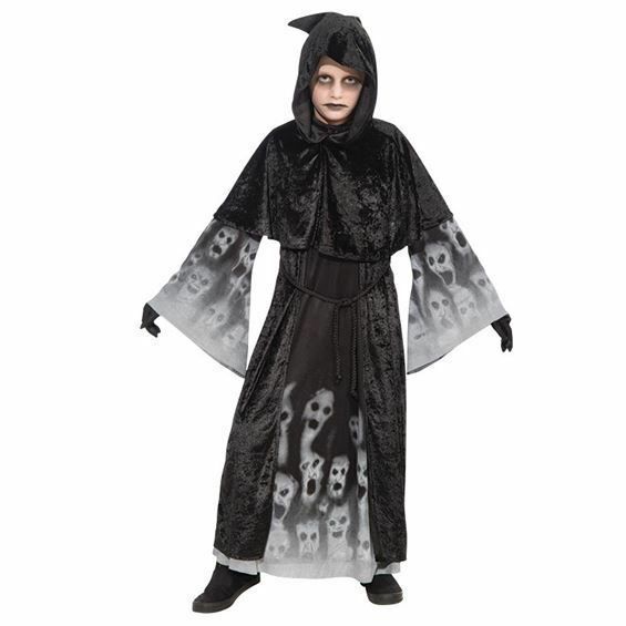 Edles Kostüm Gevatter Tod Gr. 122/134 schwarze Samtrobe Halloween Totengräber
