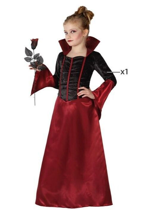 Atosa edles Mädchen Kostüm Vampir Prinzessin schwarz rot Kleid 10-12 Jahre (Gr. L)
