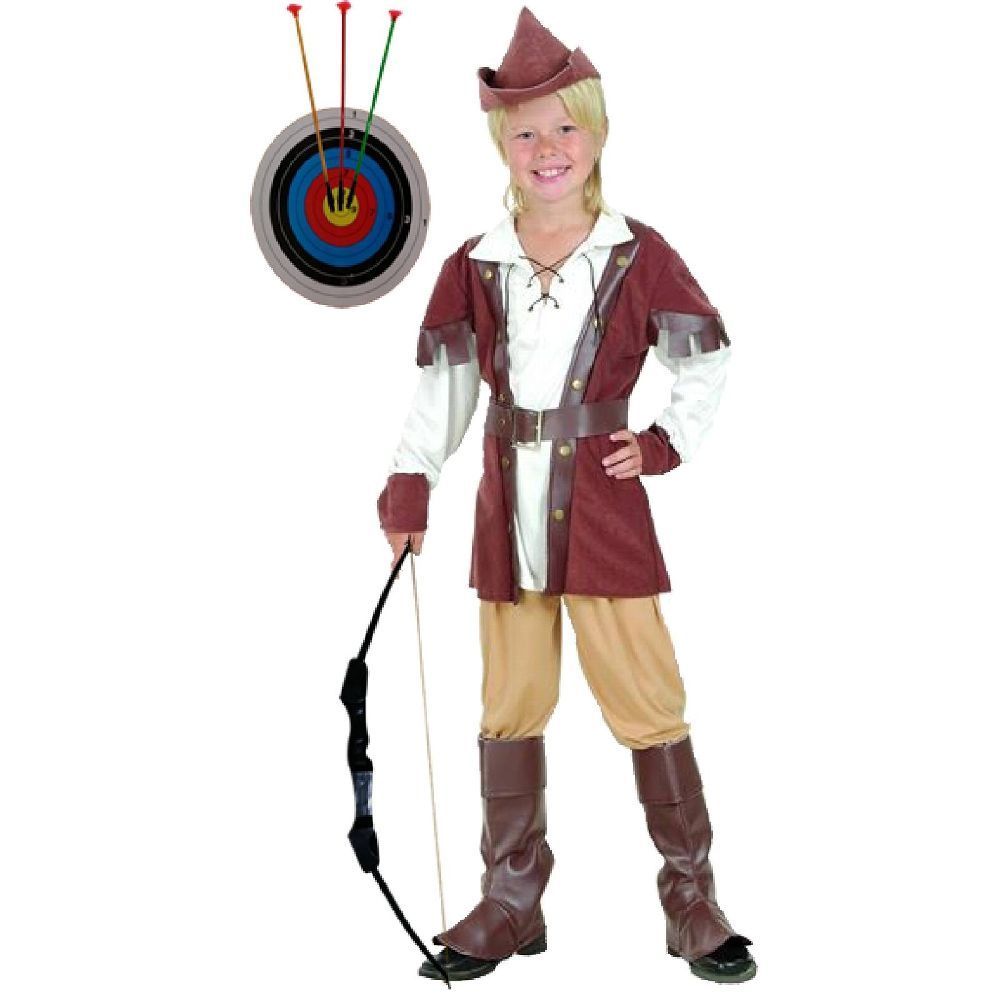 Edles Robin Hood Jungen Kostüm Gr. 110/116 + Pfeil- und Bogenset 3 Pfeile