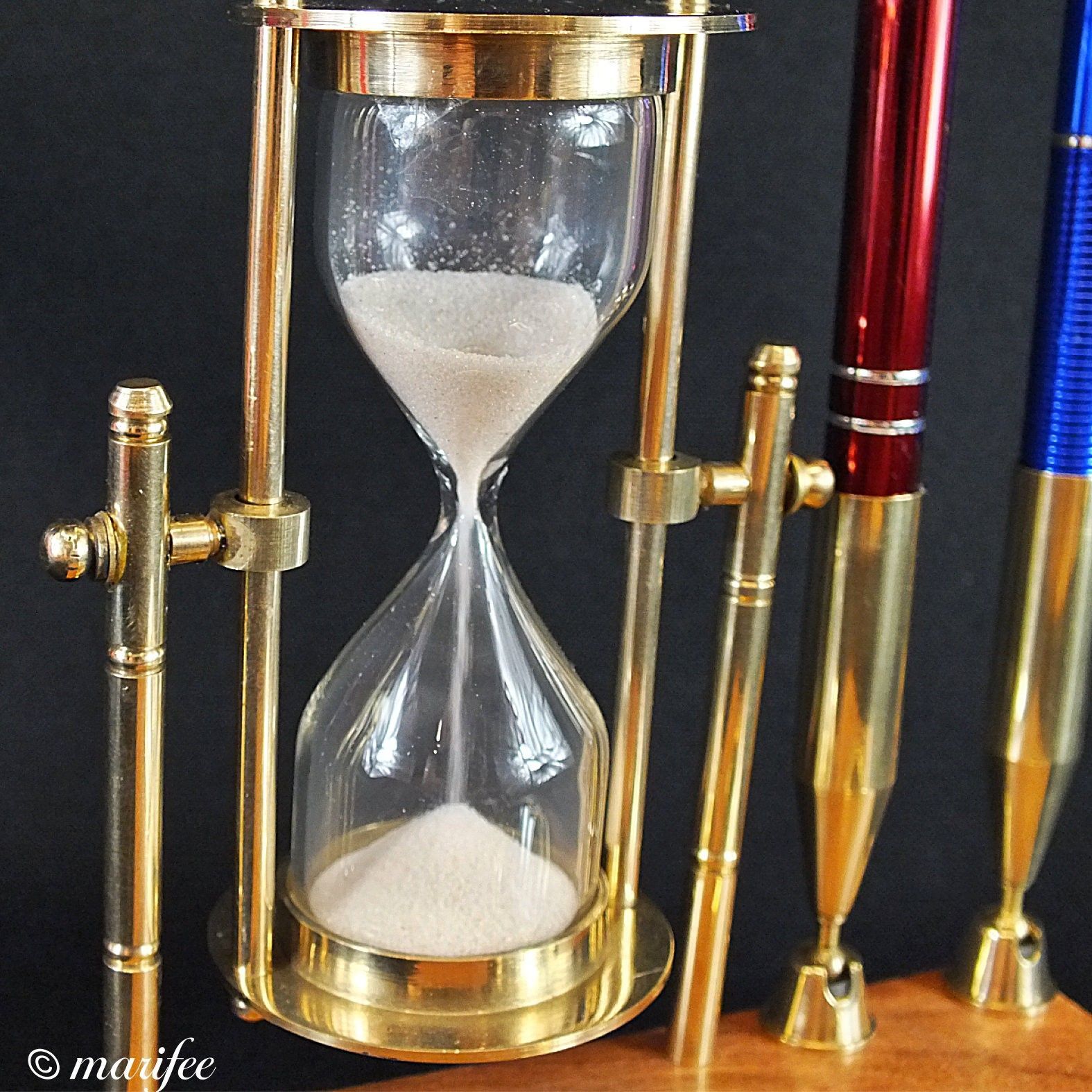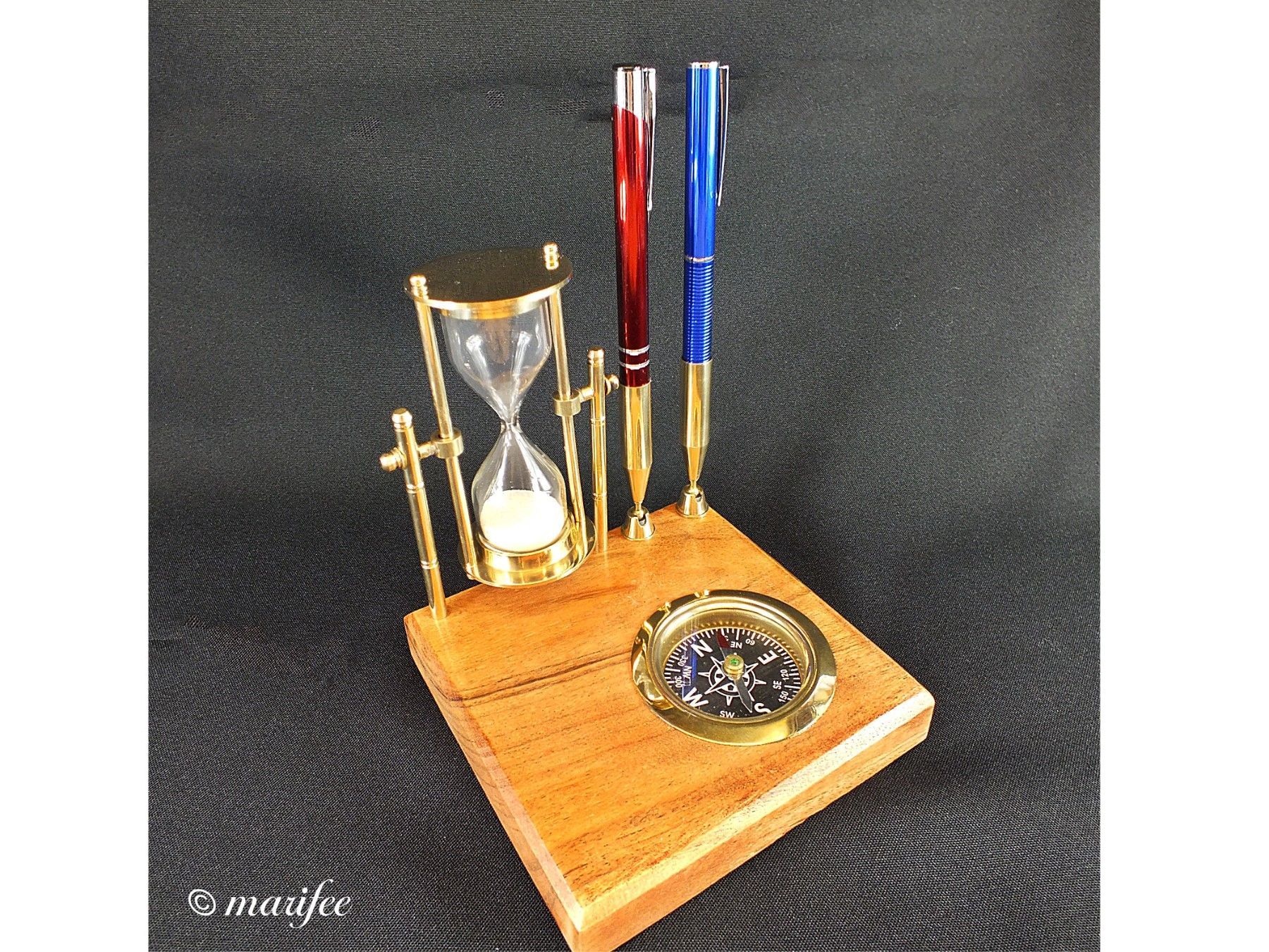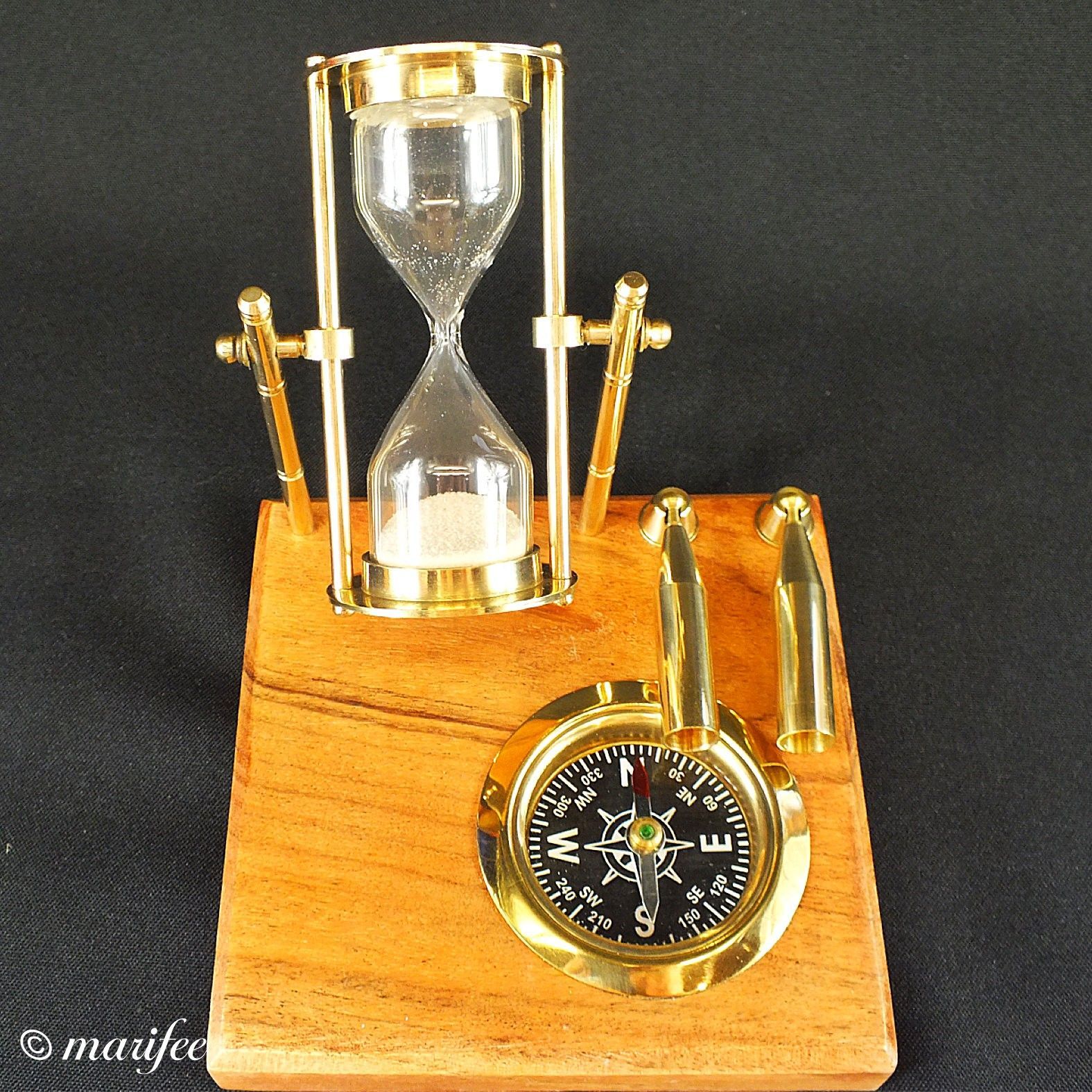 Edles Schreibtischset, Holz-Messing, mit Sanduhr und Kompass Art.-Nr. 12241