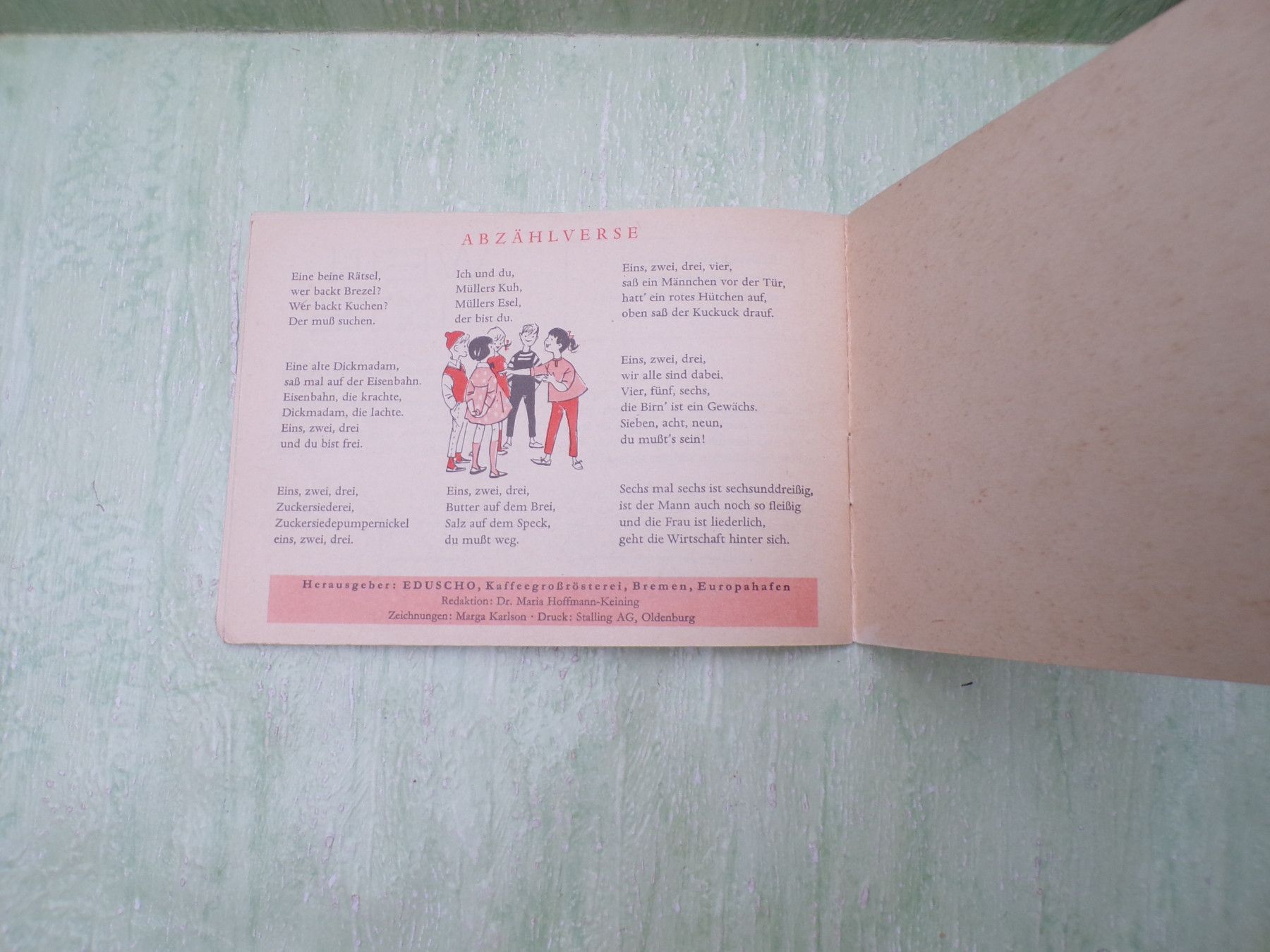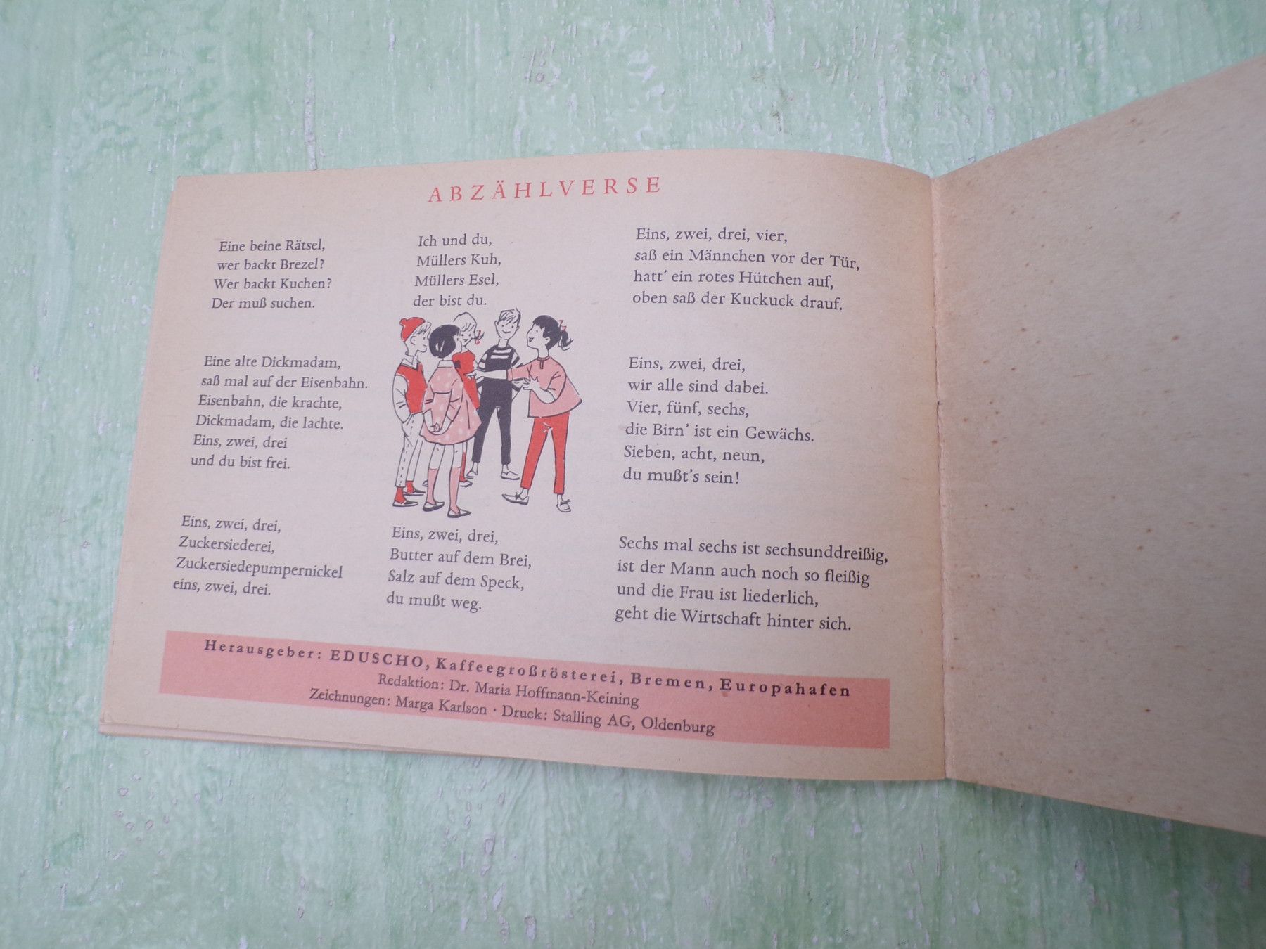 * * * Sammeln & Seltenes - Reklame & Werbung * * * * ... aus Freude an schönen Dingen ..... Heft . Spielen macht Freude . Herausgeber: Eduscho , Kaffeegroßrösterei, Bremen Eduard Schopf Zeichnungen Marga Karlson . Spiele im Freien - Spiele im Zimmer - Ein paar Tips zum Pfänder auslösen - uvm