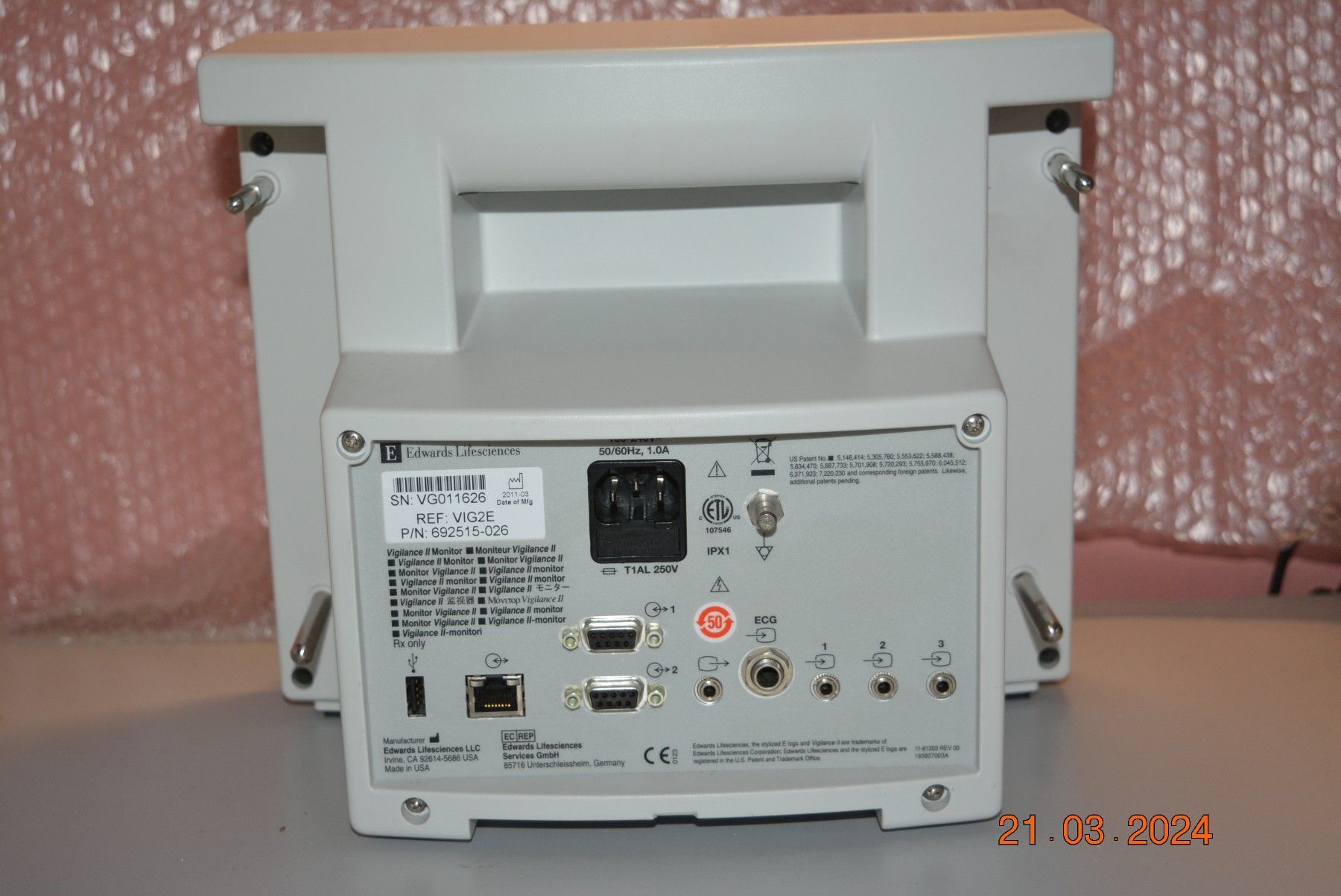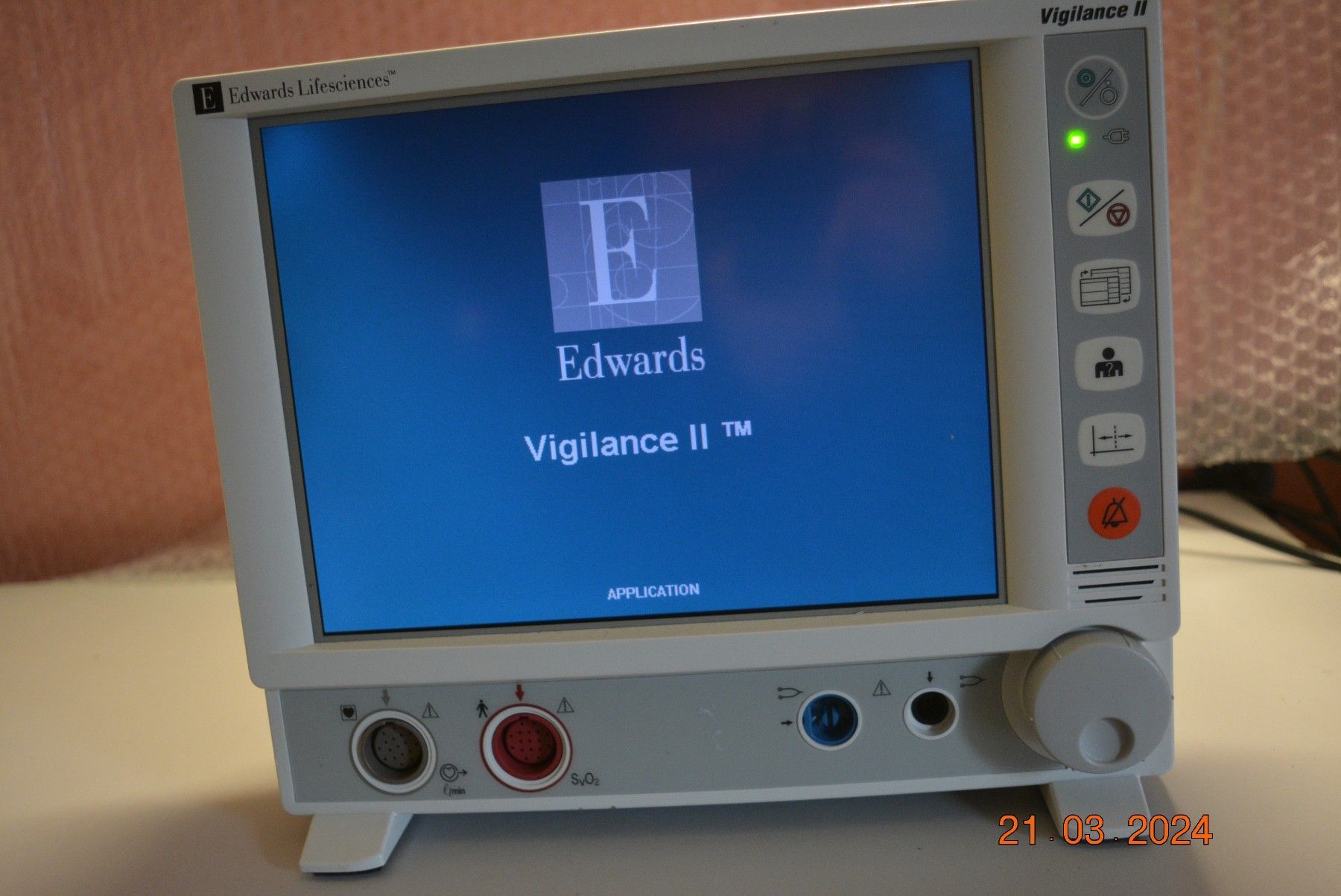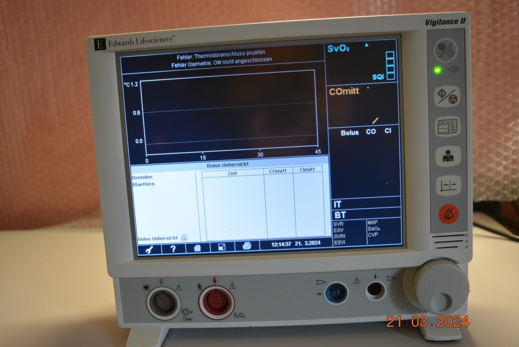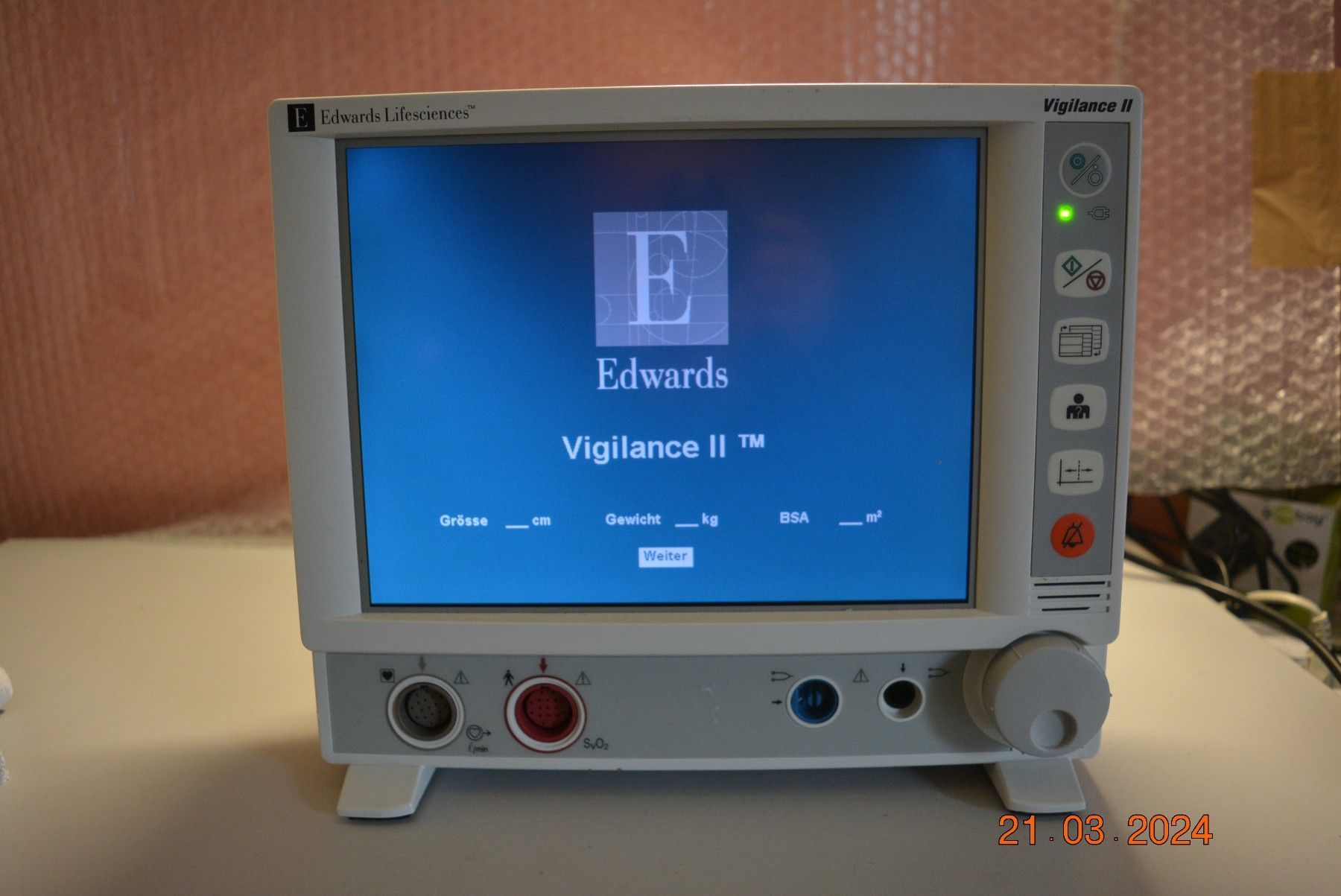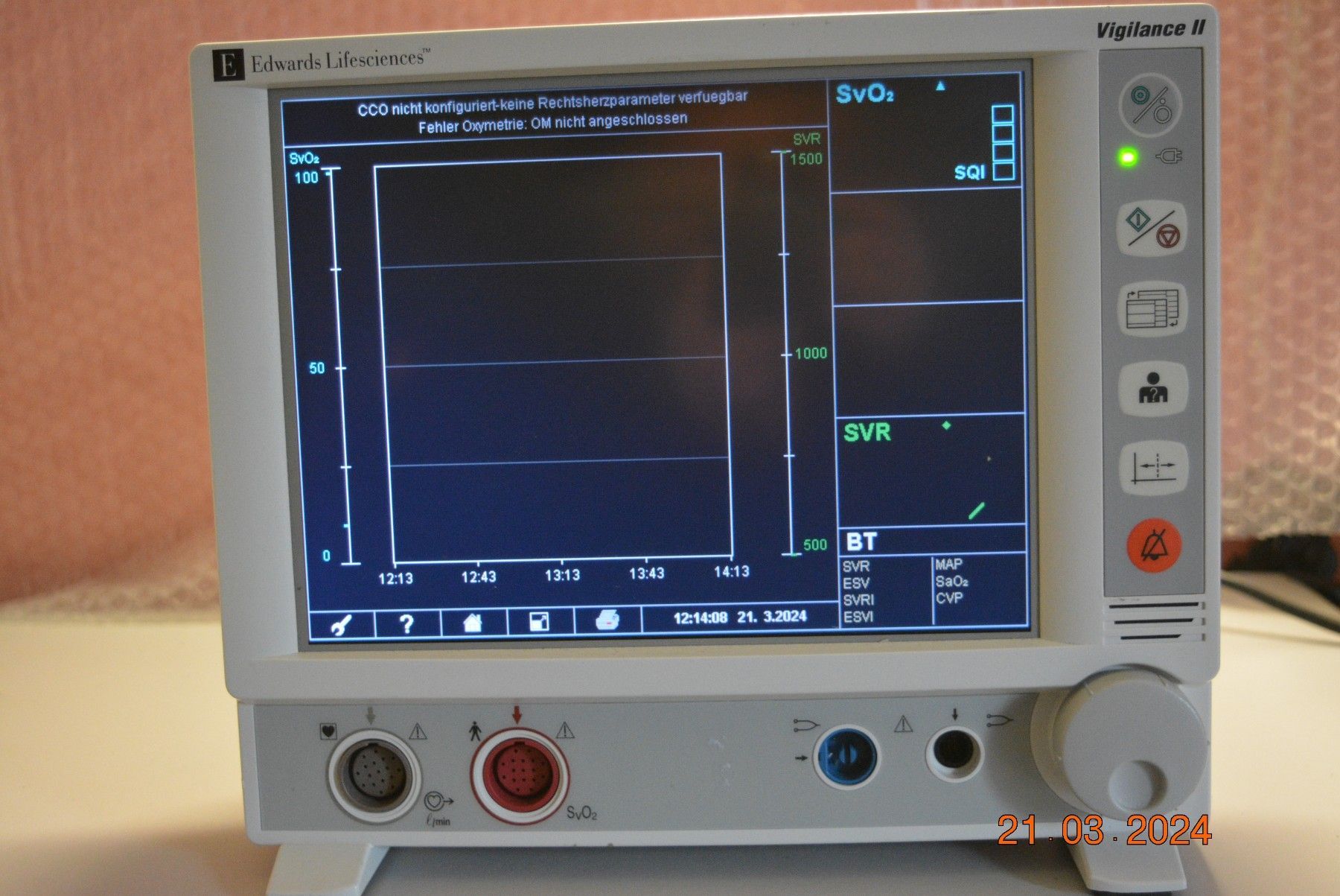 Edwards Lifesciences Vigilance II Patientenmonitor (23) DK gebraucht voll funktionsfähig gereinigt und desinfiziert ohne Netzkabel o. Netzteil ist im Originalzustand, CE geprüft geliefert wie auf den Fotos zu sehen ist, kein weiteres Zubehör soweit es Fehler oder Defekte gibt wären die oben beschrie