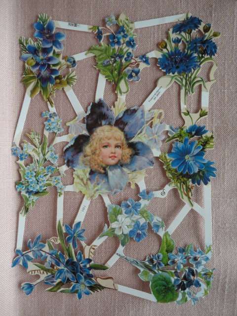 EF 7101 Glanzbilderbogen Ernst Freihoff printed in W-Germany Blumen Blüten blau