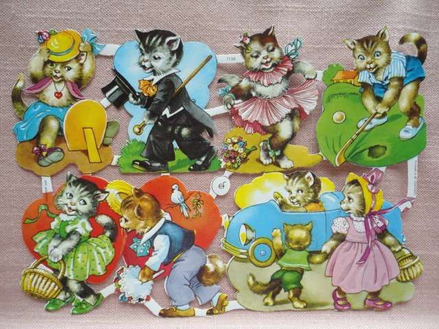 EF 7139 Glanzbilderbogen Ernst Freihoff - West Germany süße Tiere Katzen