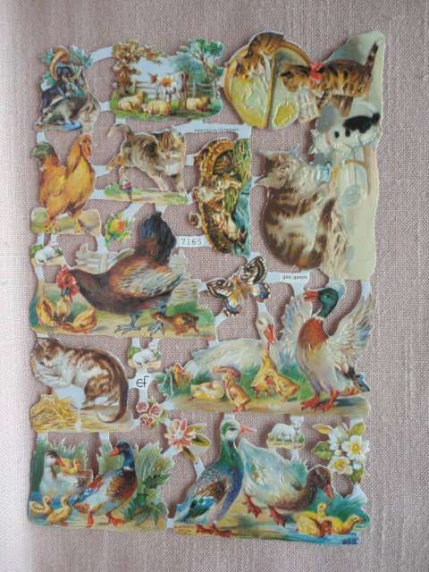 EF 7165 Glanzbilderbogen Ernst Freihoff - Tiere Enten Hühner Küken Katze Kuh Schaf...