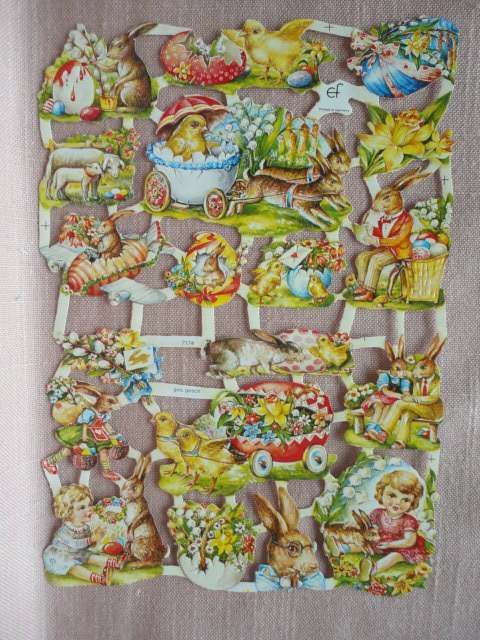 EF 7174 Glanzbilderbogen Ernst Freihoff - Frohe Ostern Hasenpaar Kinder Küken