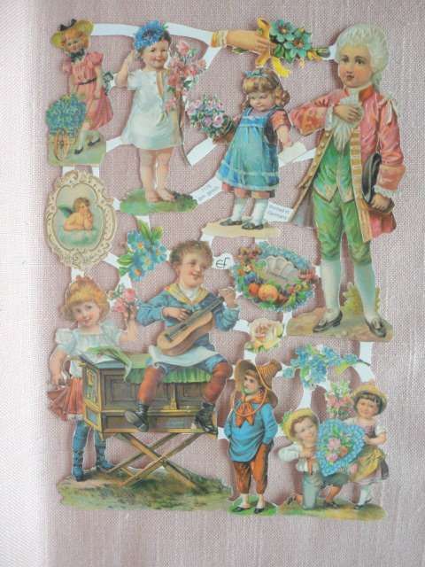 EF 7175 Glanzbilderbogen Ernst Freihoff - Zur Erinnerung Kinder Musik Blumenherz