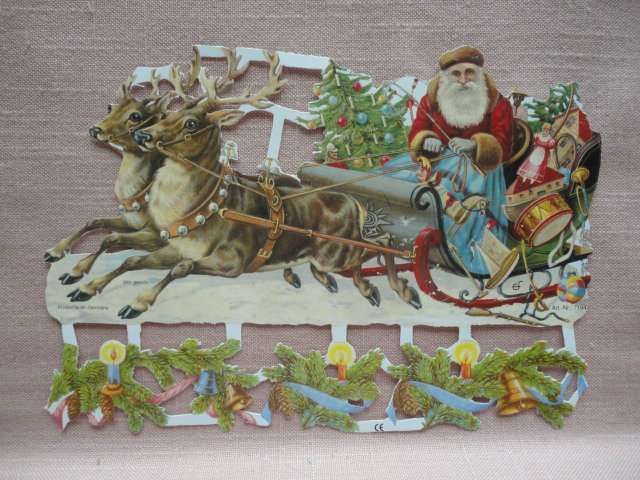 EF 7194 Glanzbilderbogen Ernst Freihoff- West-Germany Rentierschlitten Weihnachtsmann