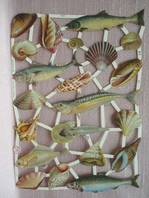 EF 7247 Glanzbilderbogen Ernst Freihoff - Fische Tiere Muscheln