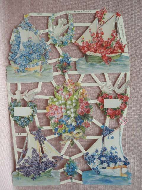 EF 7251 Glanzbilderbogen Ernst Freihoff - blumige Segelschiffe