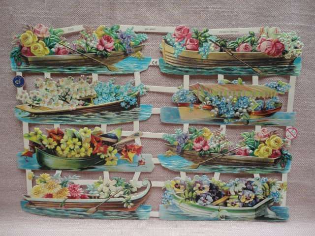 EF 7325 Glanzbilderbogen Ernst Freihoff Ruderboot Schiffe Blumenladung