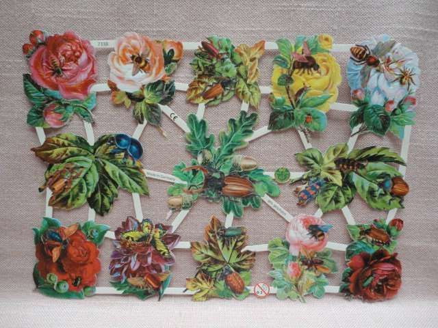 EF 7338 Glanzbilderbogen Ernst Freihoff Blumen Bienen Schmetterlinge Käfer Bienen...