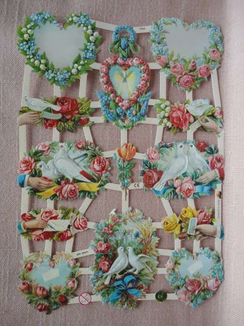 EF 7354 Glanzbilderbogen Ernst Freihoff Turteltauben Herzen Liebe Hochzeit Freunde