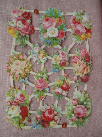 EF 7372 Glanzbilderbogen Ernst Freihoff Rosen Tulpen Maiglöckchen... Blumen