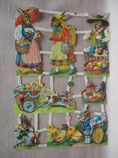 EF 7389 Glanzbilderbogen Ernst Freihoff Frohe Ostern Osterhasen
