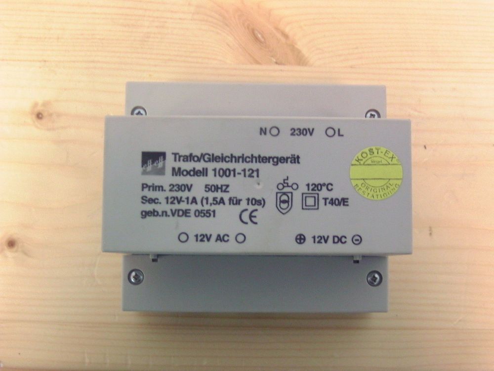 EFF Trafo Gleichrichtergerät Model 1001-121 pri 230 V sek. 12 V 1 A Klingeltrafo