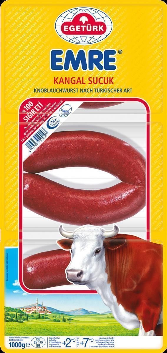 Egeütrk Emre Kangal Sucuk 2x 1kg türkische Knoblauchwurst aus 100% Rindfleisch
