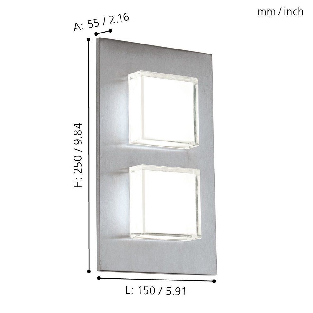 EGLO LED Wandleuchte "PIAS" Edelstahl silber 5W 3000K 25x15x5,5cm 93365