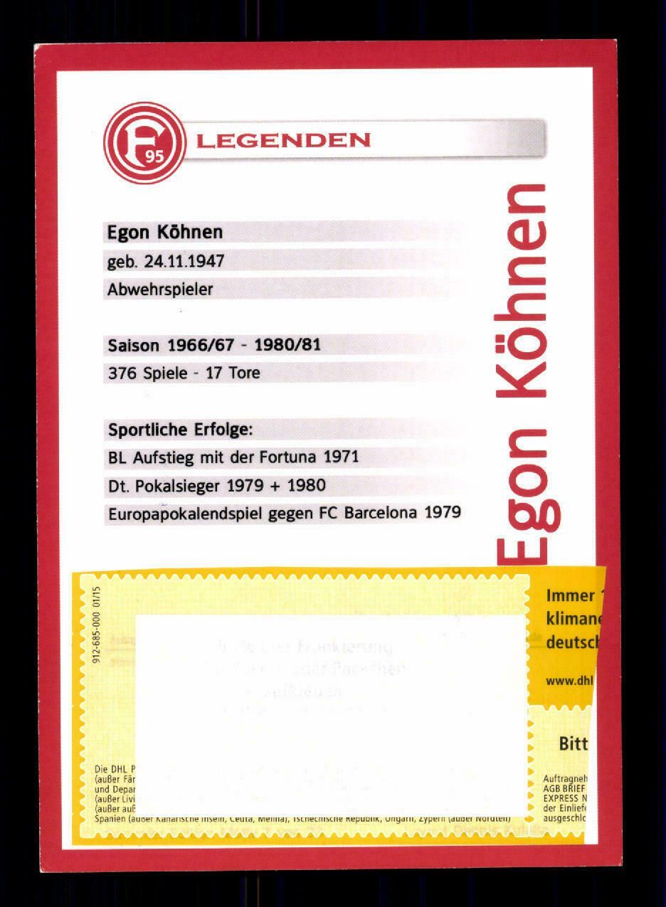Egon Köhnen Autogrammkarte Fortuna Düsseldorf Original Signiert