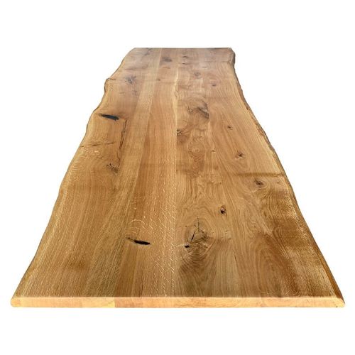 Eiche, Tischplatte, verleimt, astig, rustikal, 200x100x4,5 cm, beidseitig Baumkante,