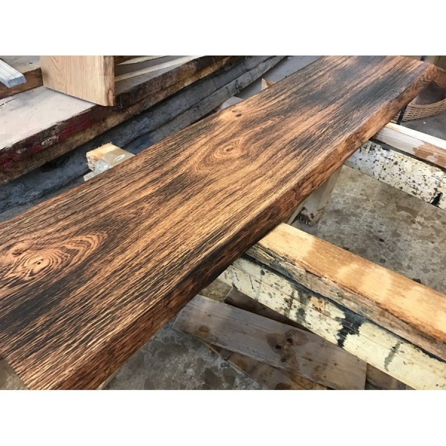 Eichenbohle, geflammt, geölt, Baumkante, unbesäumt, Altholz-Stil, rustikal, Massivhol