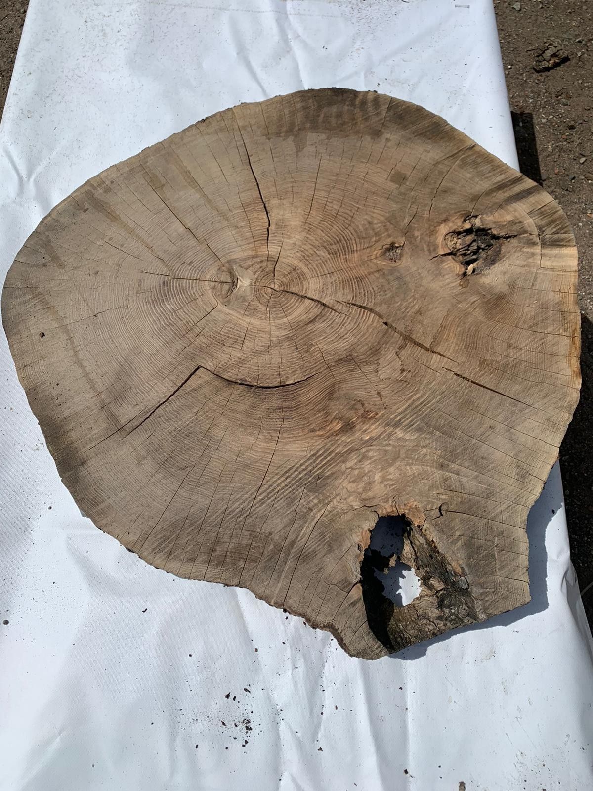 Wir bieten eine einzigartige Eichenscheibe mit den Maßen 77x76x8cm an. Dieses Einzelstück ist ideal für die Weiterverarbeitung von Hand oder mit den Möglichkeiten unserer Werkstatt (siehe unten in der Beschreibung). DIE SCHEIBE IST EIN HERVORRAGENDES MATERIAL FÜR DIE ARBEIT MIT EPOXIDHARZ! Perfekt g
