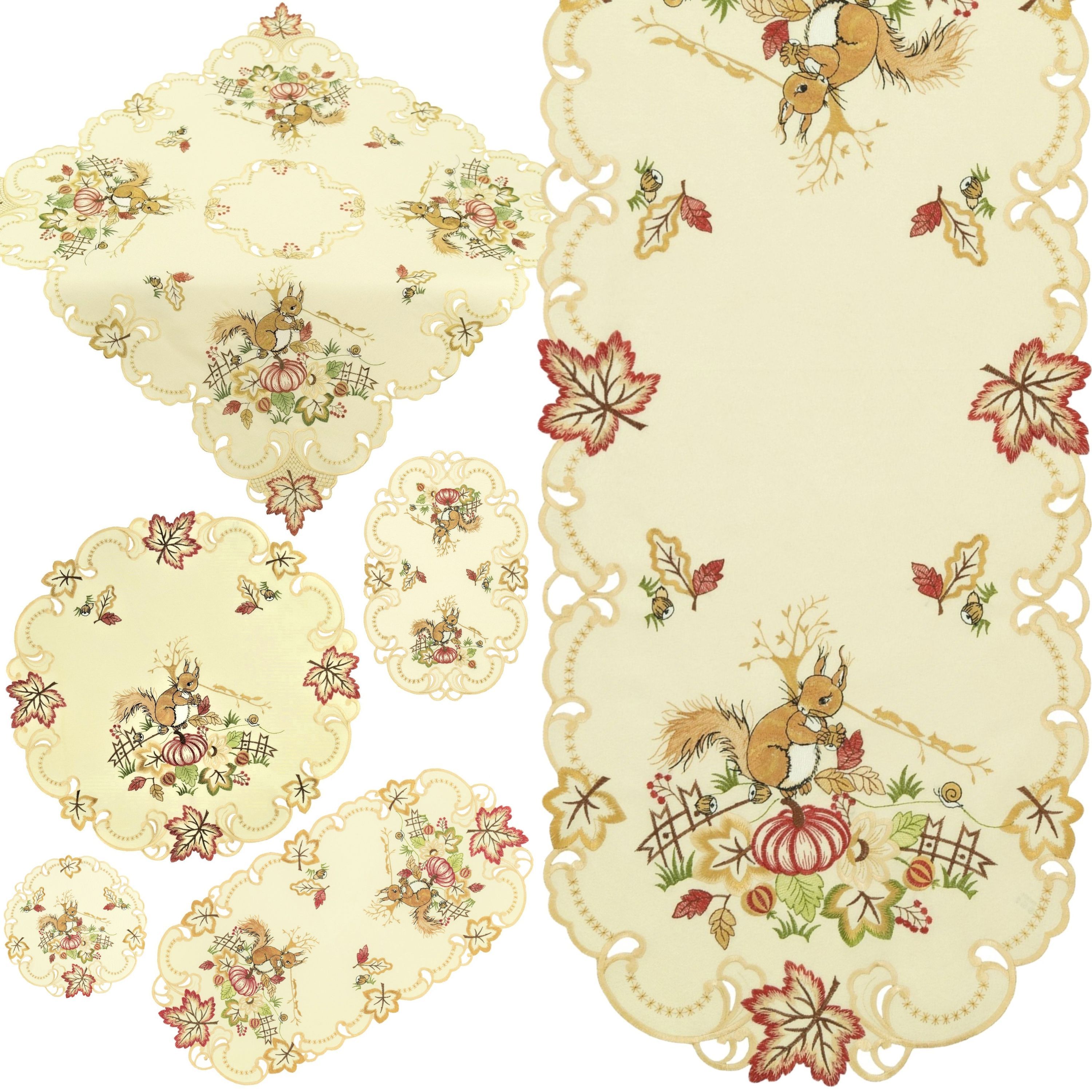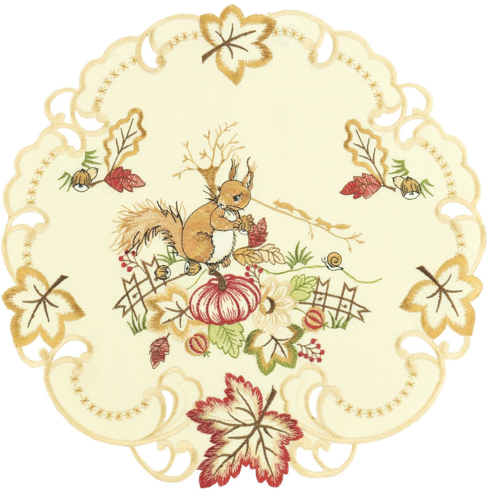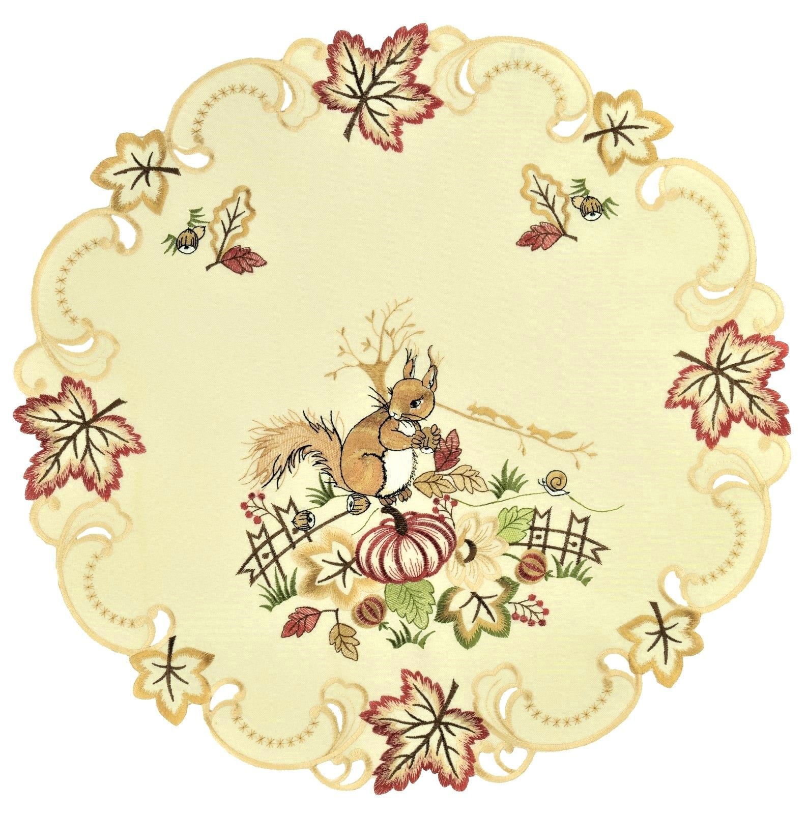 Eichhörnchen Kürbis Herbst Tischwäsche Herbstlich Bestickt Stoff Waschbar