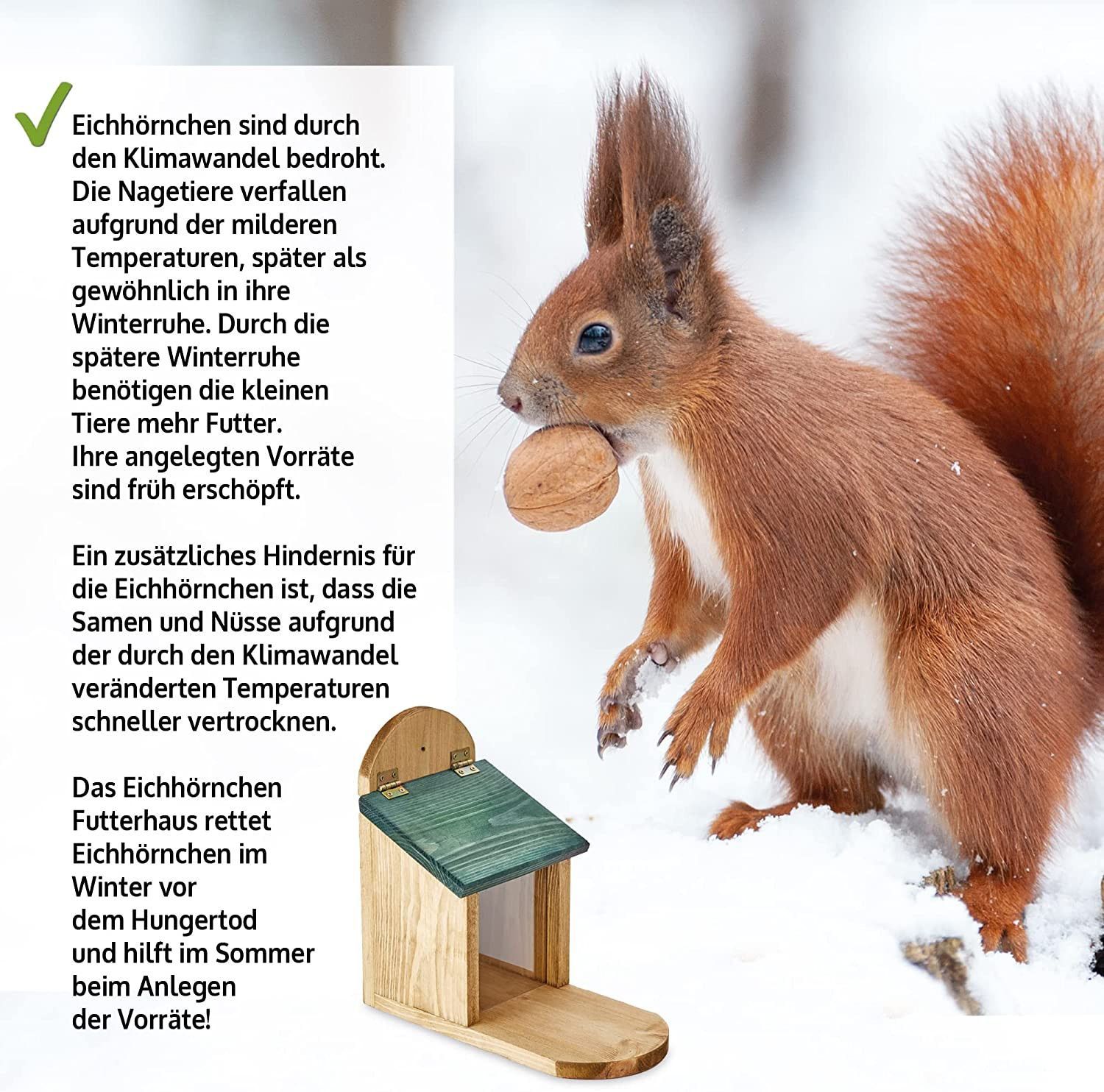 Eichhörnchen Futterstation Die Nagetiere verfallen aufgrund des Klimawandels und milderer Temperaturen später als gewöhnlich in ihre Winterruhe. Dadurch benötigen die kleinen Tiere mehr Futter, denn ihre angelegten Vorräte sind früh erschöpft. Auch vertrocknen die Samen und Nüsse aufgrund steigender