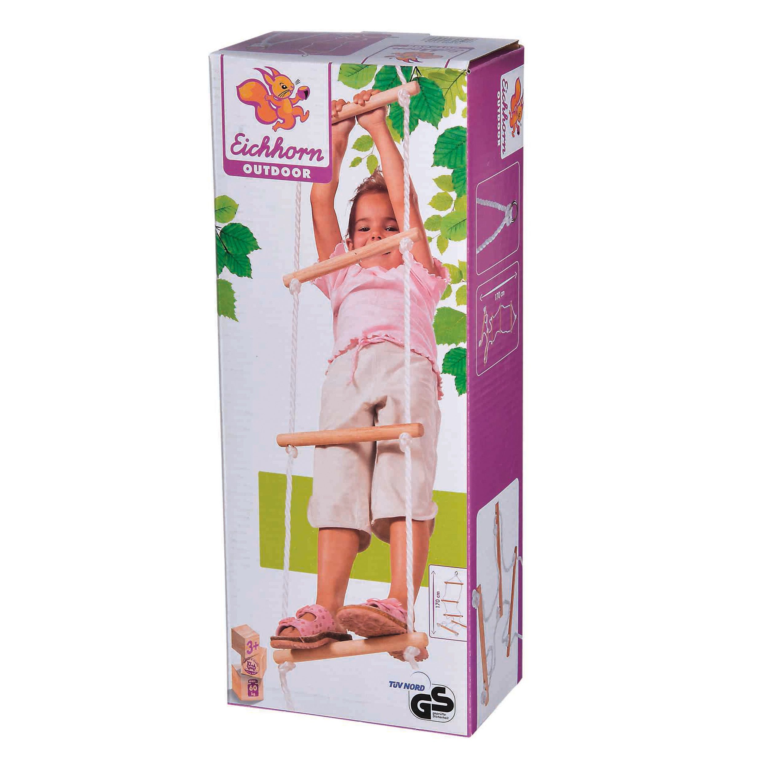 Eichhorn Strickleiter Holz Outdoor Klettern Garten 60kg Verstellbar