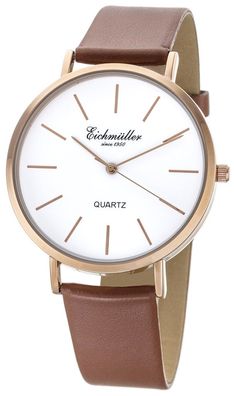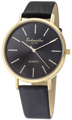 • Eichmüller Herren Armbanduhr Quarzwerk 3ATM schwarz analoge Lederband