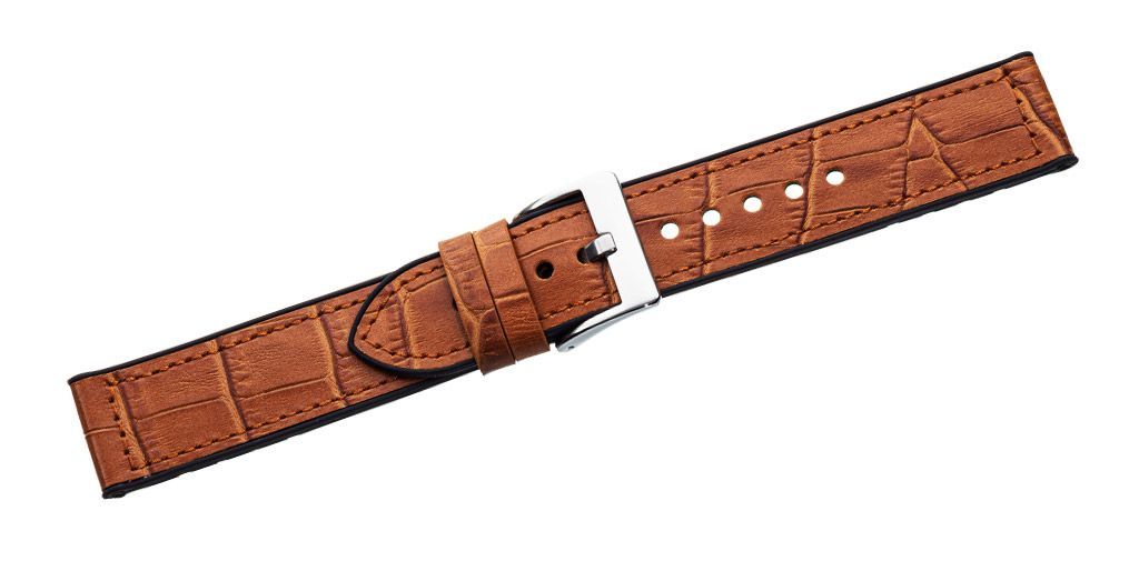 Eichmüller Uhrenarmband Leder / Silikon braun Krokoprägung Dornschließe