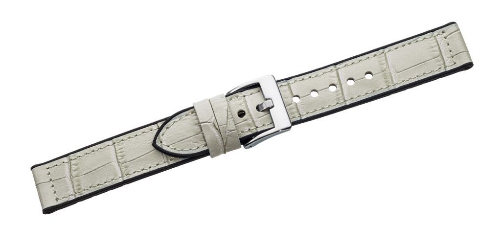 Eichmüller Uhrenarmband Leder / Silikon grau-blau Krokoprägung Dornschließe