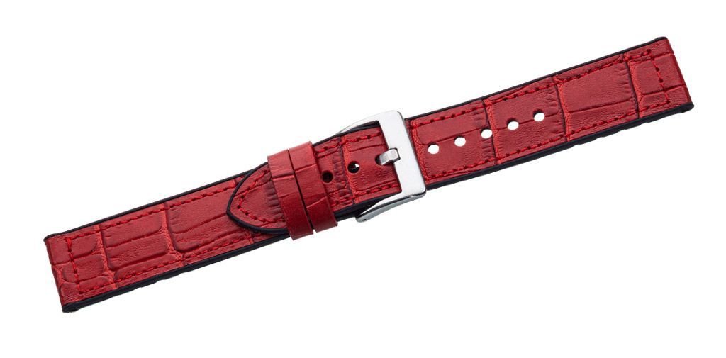 Eichmüller Uhrenarmband Leder / Silikon rot Krokoprägung Dornschließe