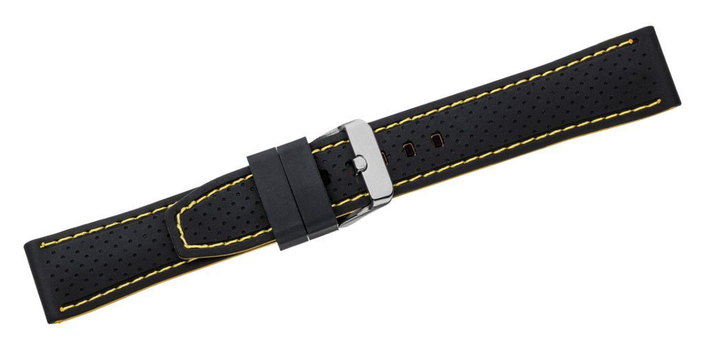 Eichmüller Uhrenarmband Silikon schwarz gelbe Naht Lochmuster