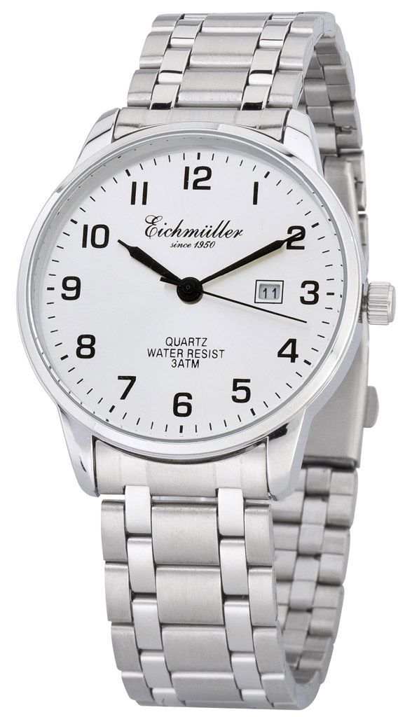 Eichmüller Herrenuhr Datum Analog Edelstahlband silberfarben Quarzuhr