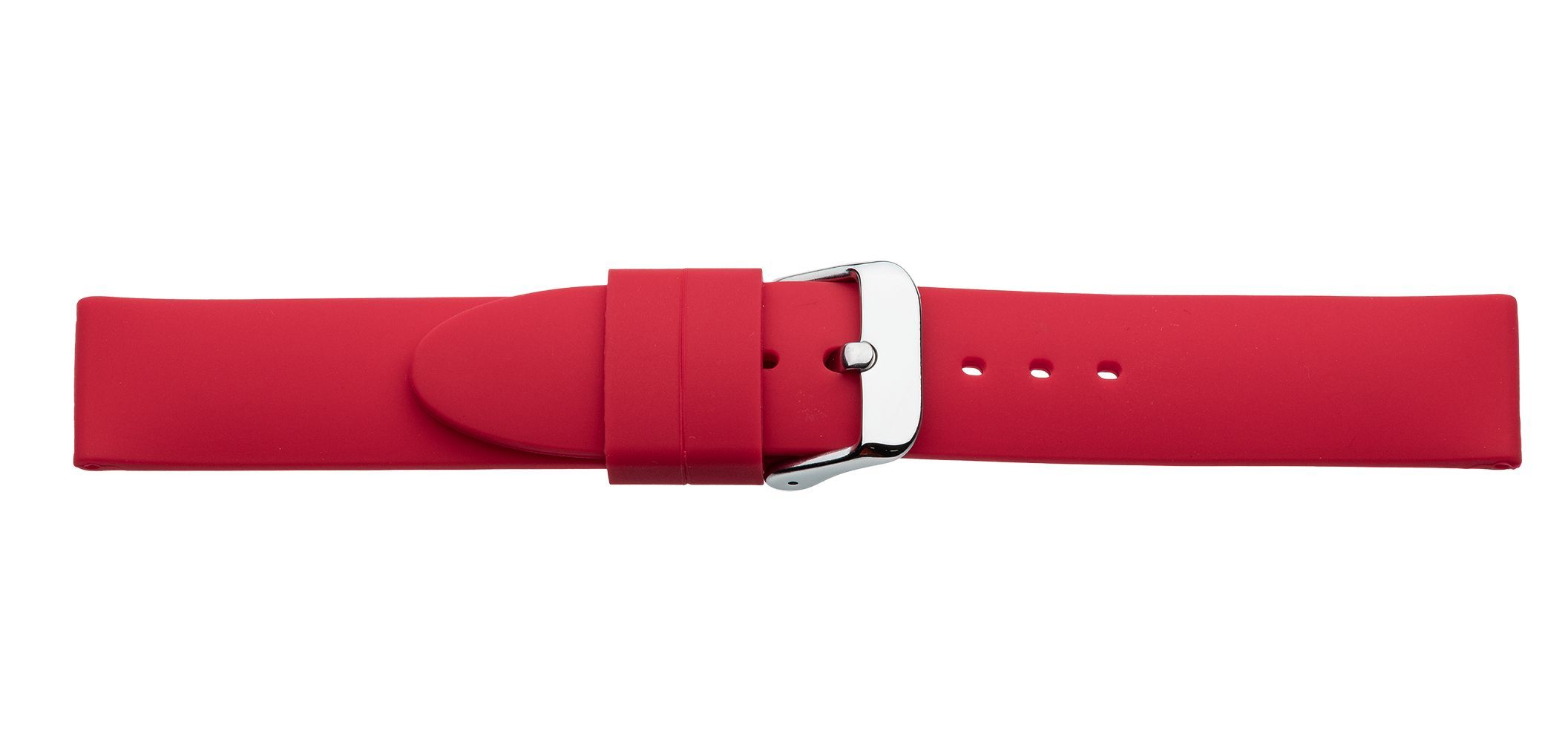 EICHMÜLLER Silikon-Band Ennio rot 0142 Das rote flache Silikonband mit geradem Verlauf aus der Economy-Serie ist widerstandsfähig, robust und sorgt mit seinem weichen Material für ein angenehmes Tragegefühl. Durch das schlichte und zugleich sportliche Design mit glatter Oberfläche ist es eine perfek