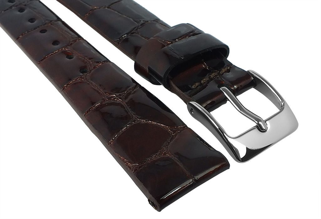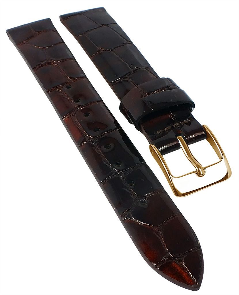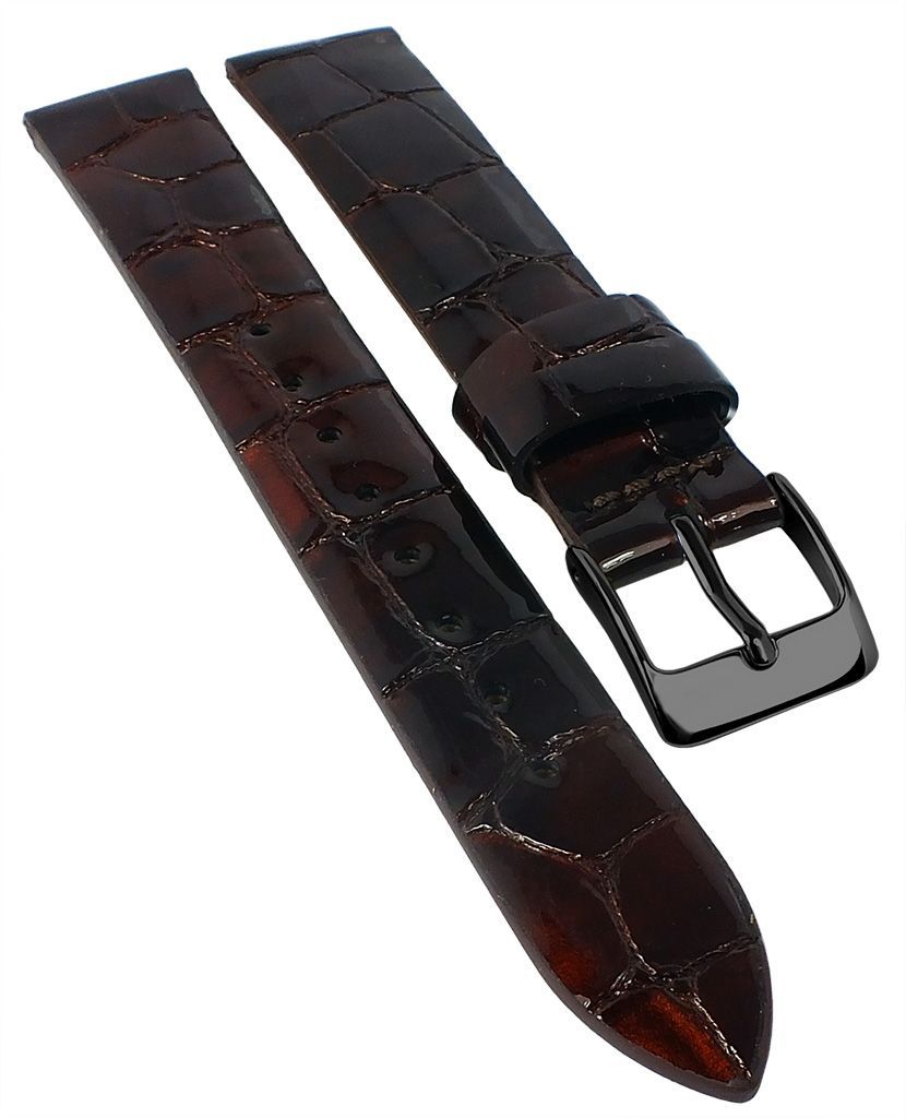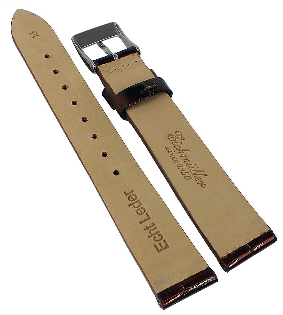 Eichmüller | Uhrenarmband Leder Kroko-Optik ohne Naht braun glänzend