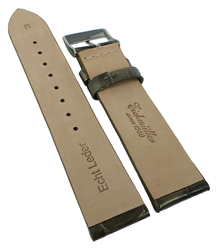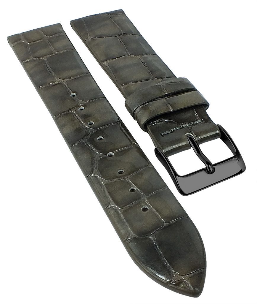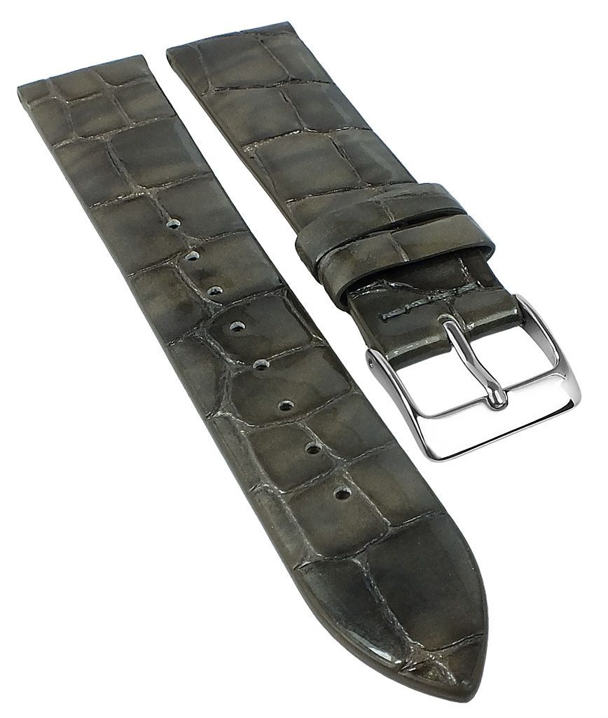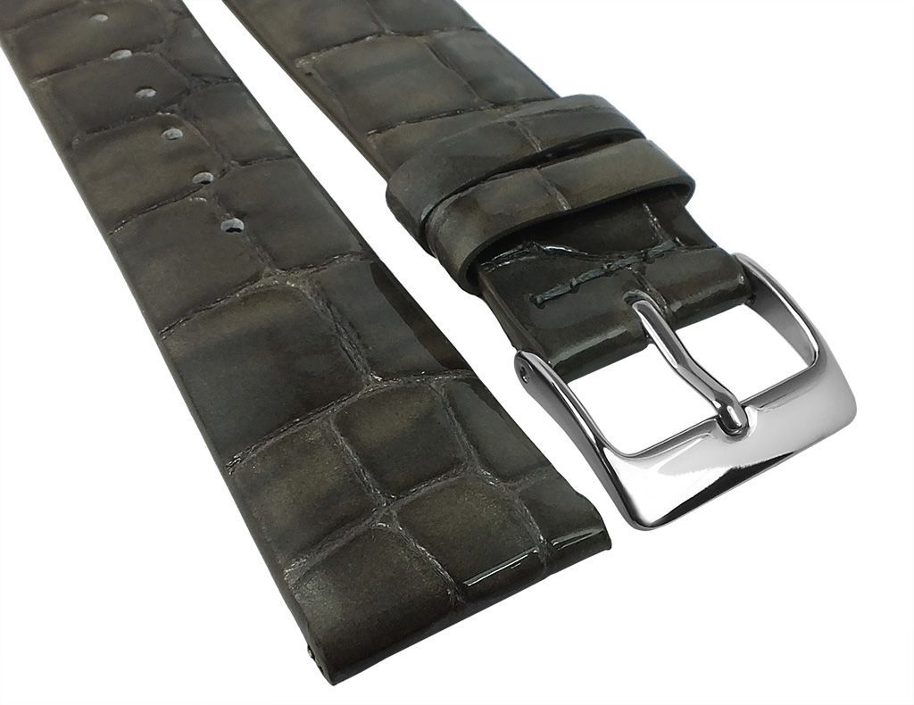 Eichmüller | Uhrenarmband Leder Kroko-Optik ohne Naht grau glänzend