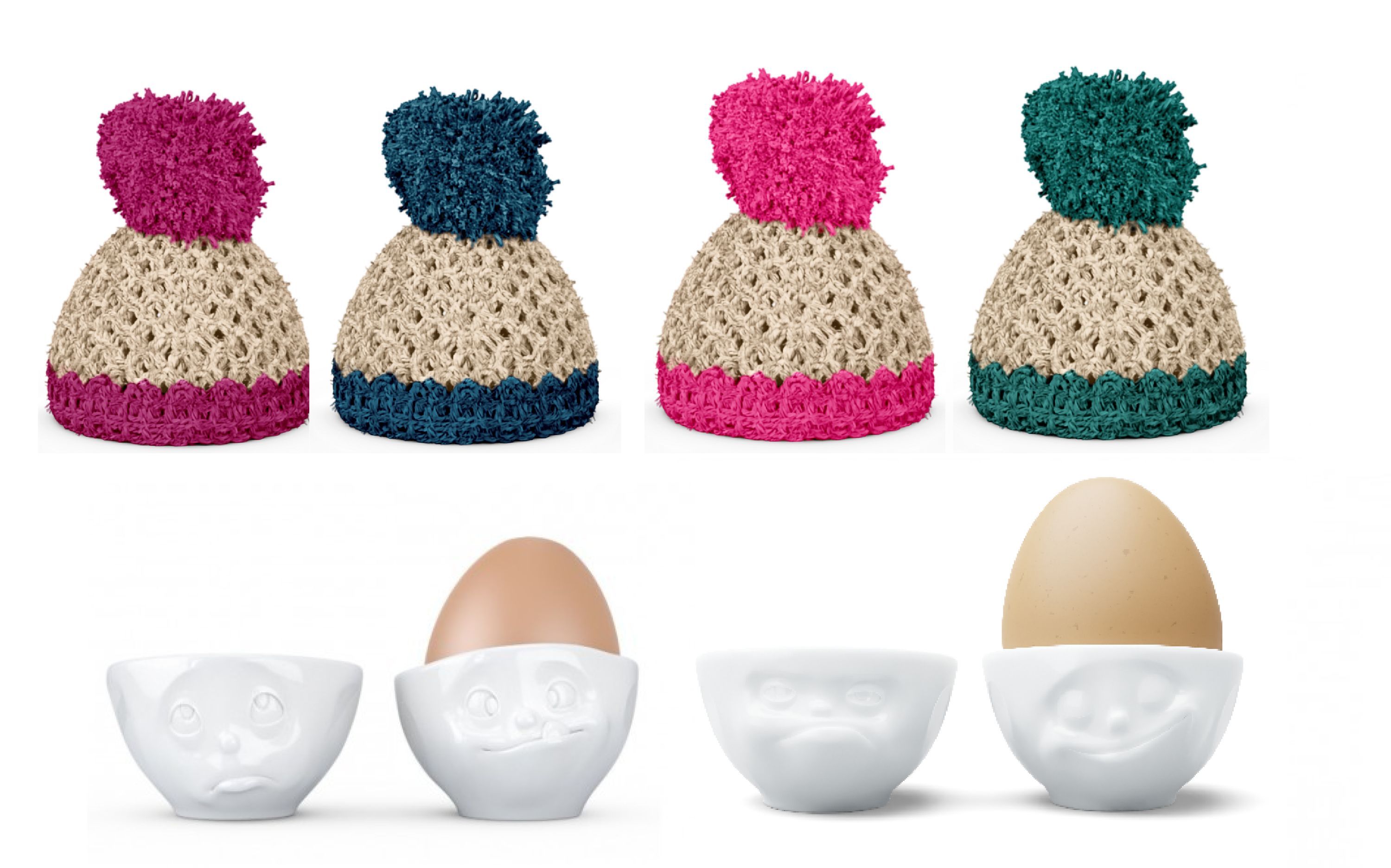 Eierbecher 4er Set OCH BITTE, LECKER, Glücklich, HMPFF mit 4 Mützen - Fiftyeight
